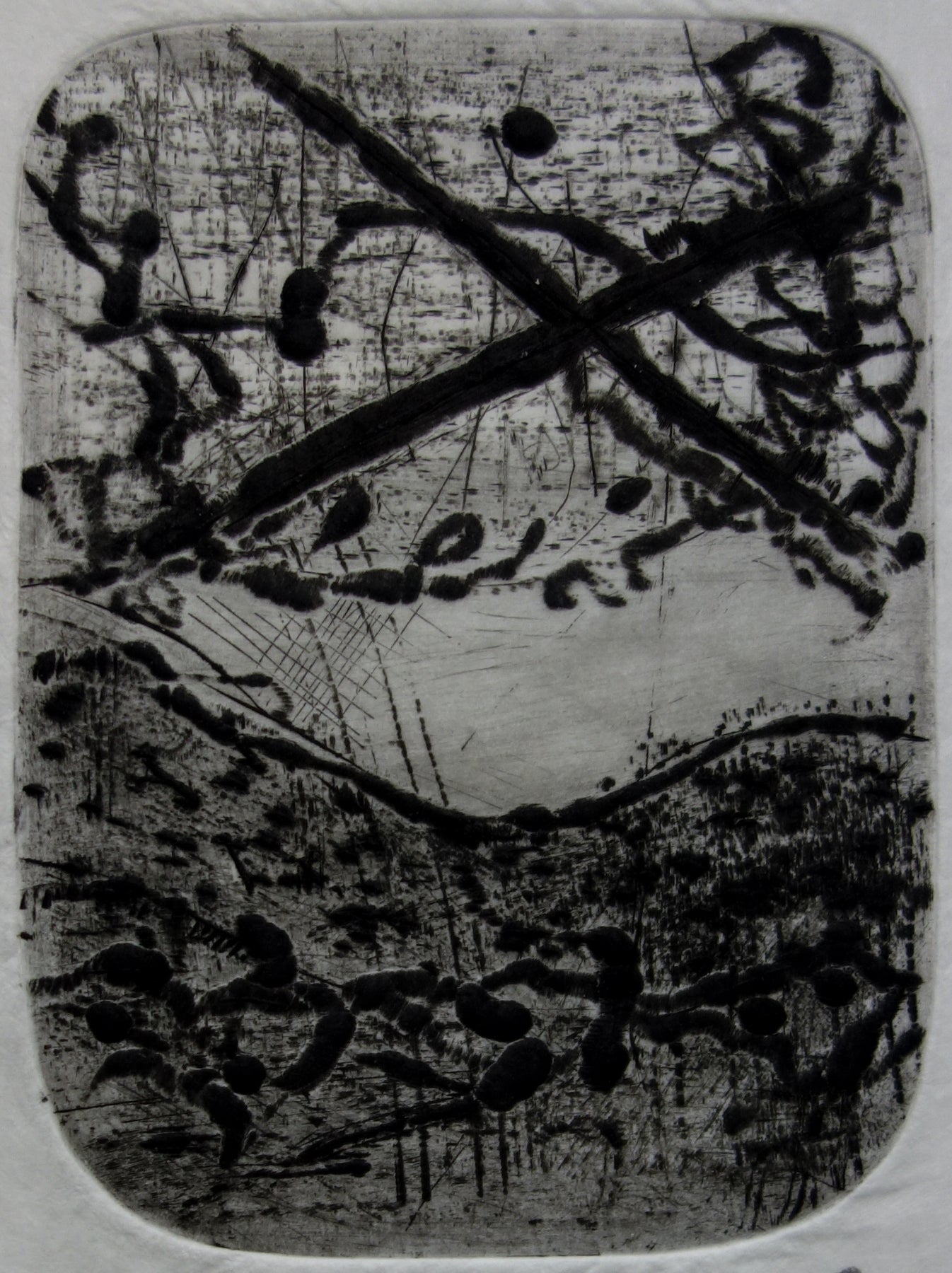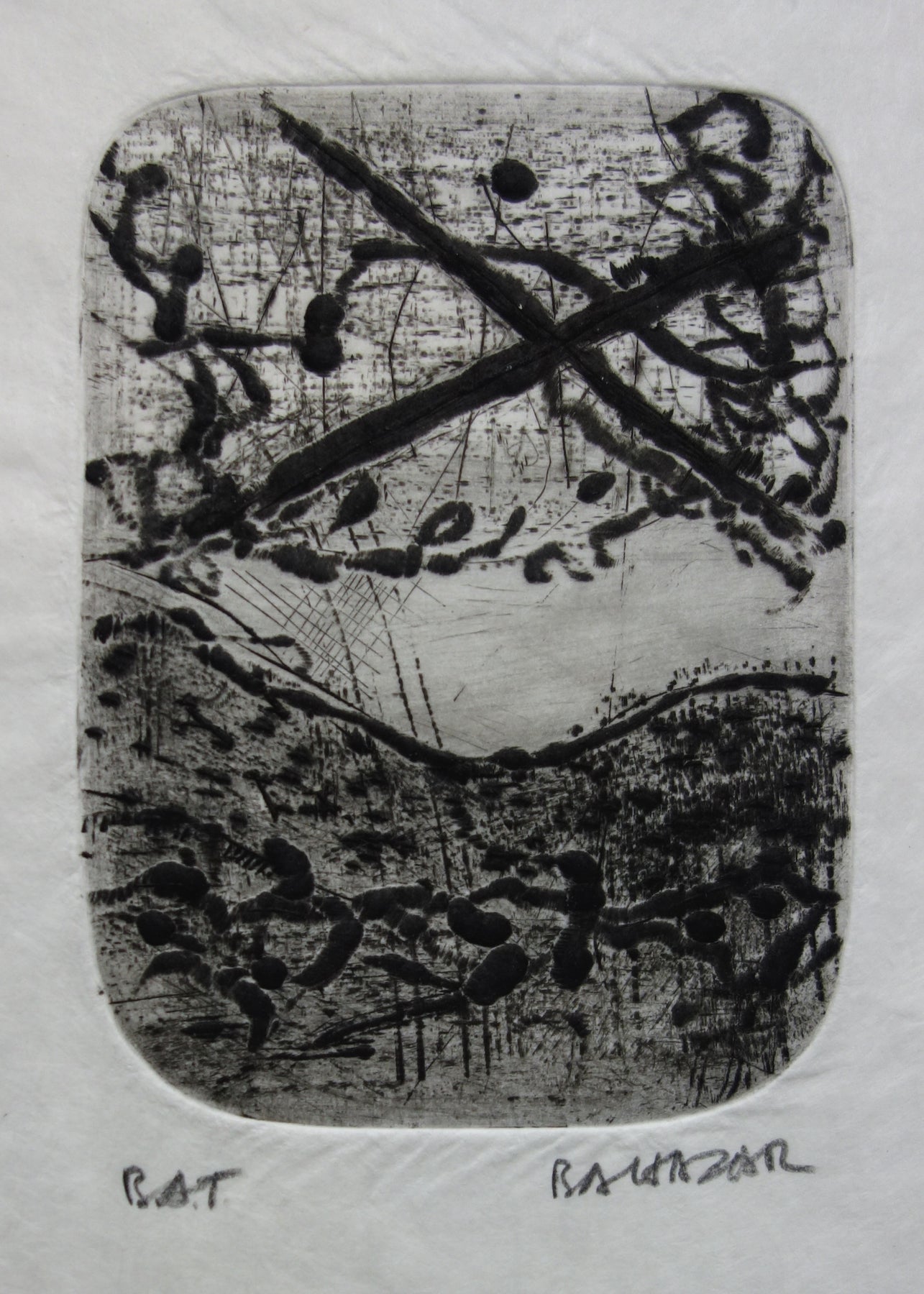 Julius BALTAZAR : Paysage obscure, Gravure originale signée