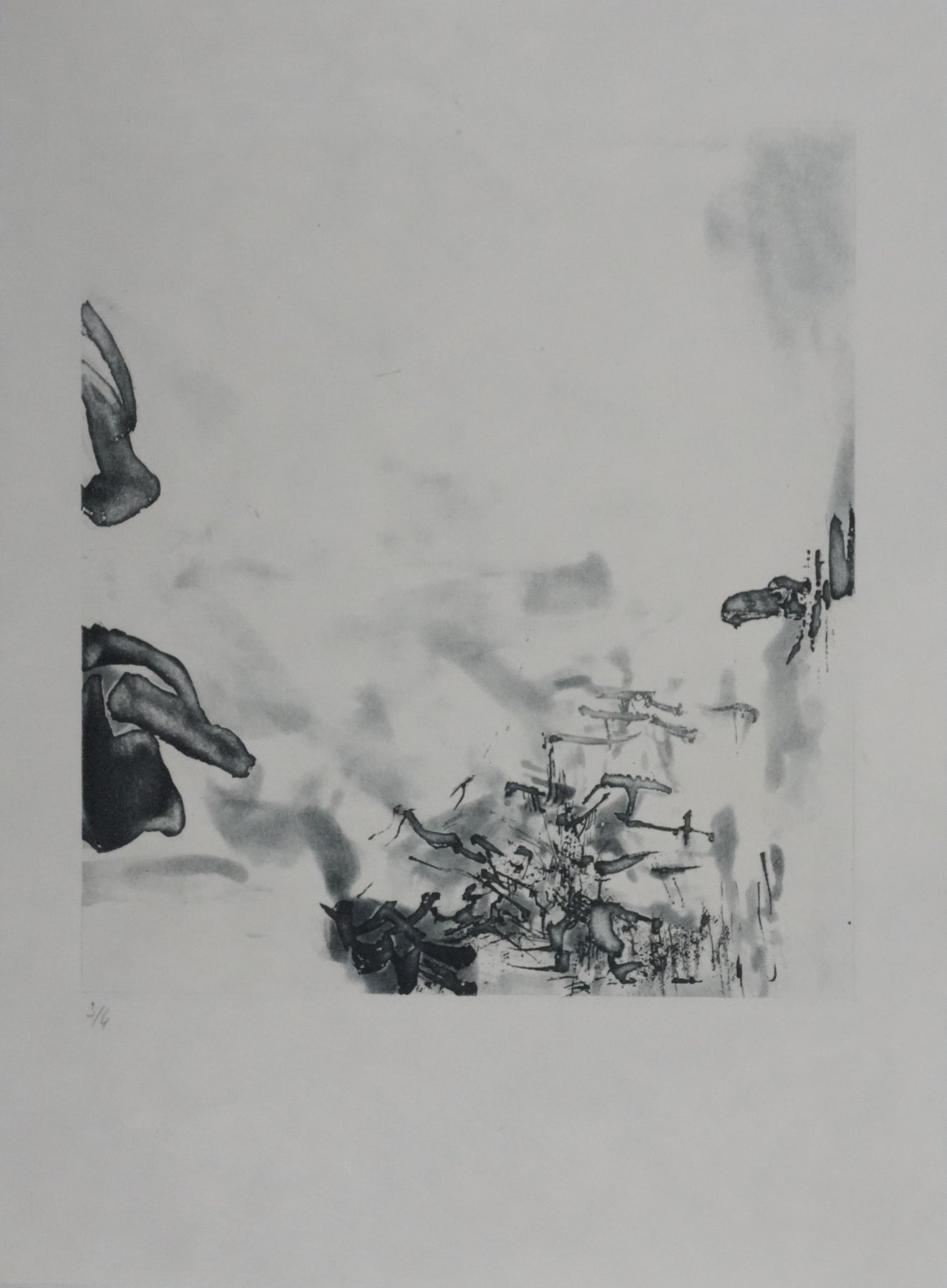 ZAO Wou-Ki : Reflets de l'étang (Etat bleu), Gravure originale