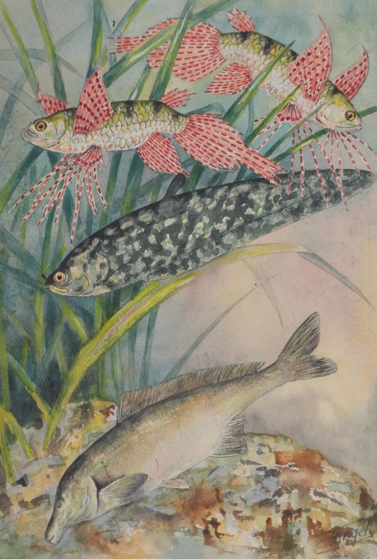 INFORMATION : Cette aquarelle a été créée pour illustrer l'ouvrage Atlas des poissons, publié en 1949 par les éditions N. Boubée et cie.
