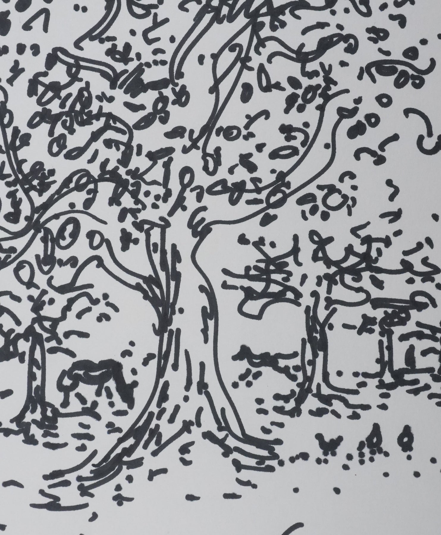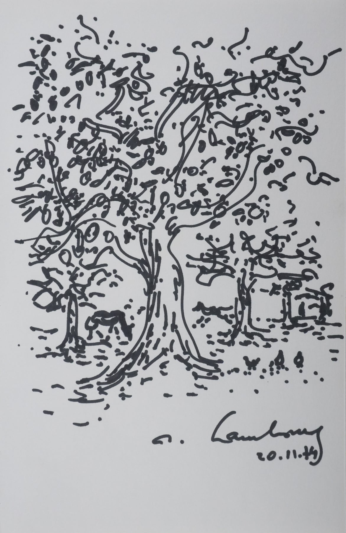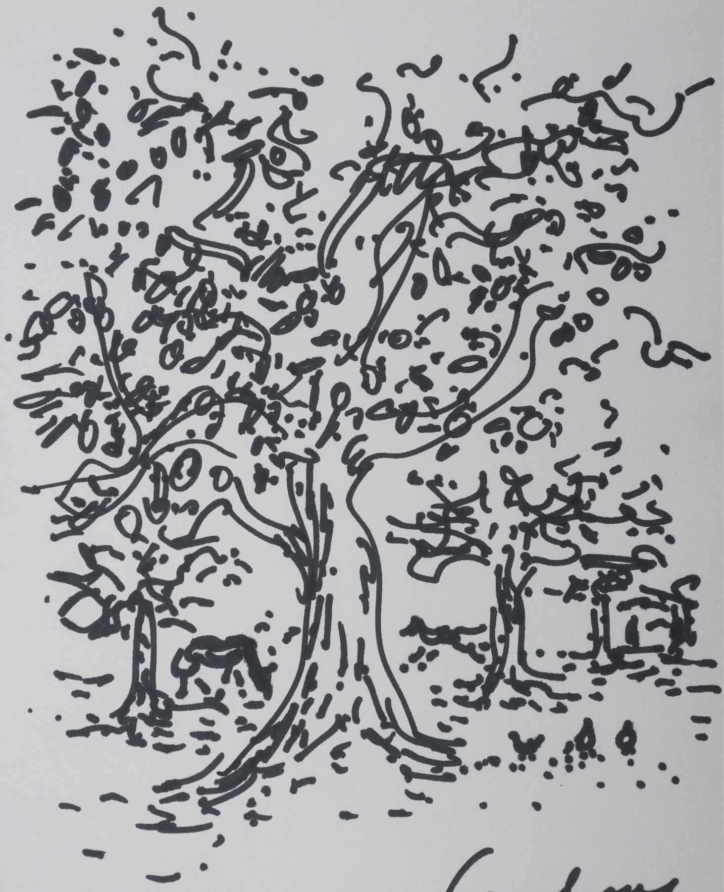 PROVENANCE : Ce dessin provient de la collection personnelle de Pierre Lhoste. Journaliste de radio, Pierre Lhoste (1913-1984) demanda aux personnalités qu’il recevait de réaliser un autographe accompagné d'un dessin d’arbre, constituant ainsi un témoignage unique de ses entretiens.