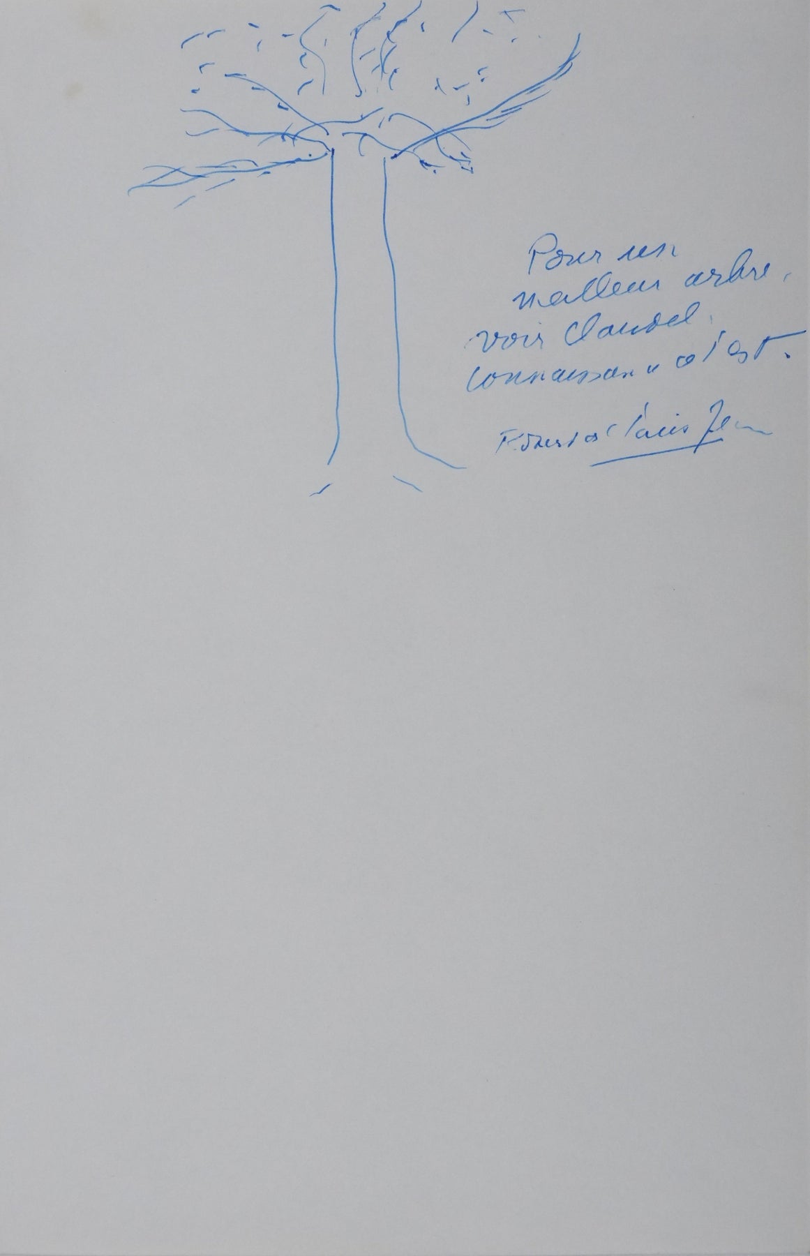 Robert de SAINT-JEAN : L'arbre bleuté, Autographe et dessin original signé