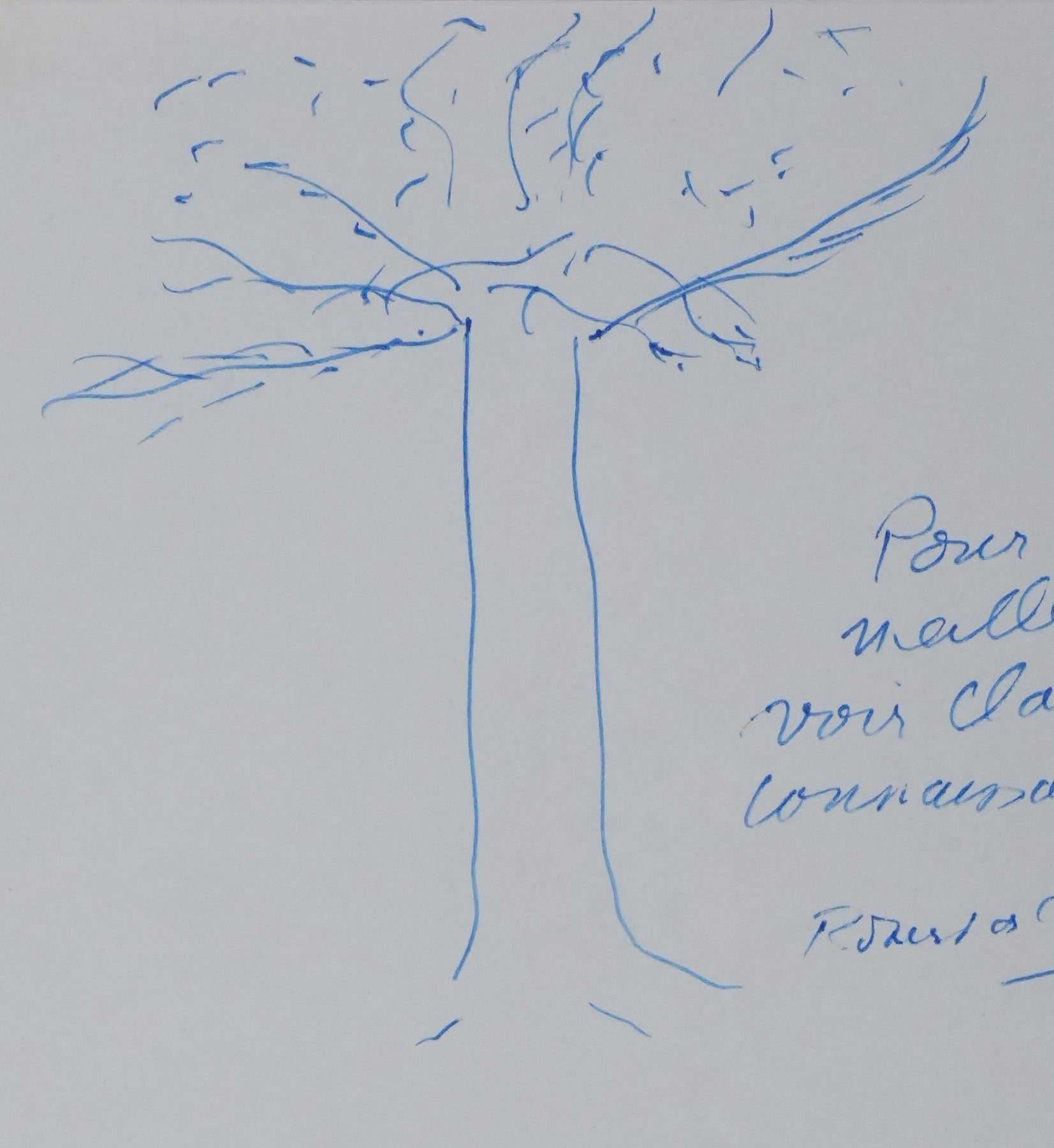 PROVENANCE : Ce dessin provient de la collection personnelle de Pierre Lhoste. Journaliste de radio, Pierre Lhoste (1913-1984) demanda aux personnalités qu’il recevait de réaliser un autographe accompagné d'un dessin d’arbre, constituant ainsi un témoignage unique de ses entretiens.