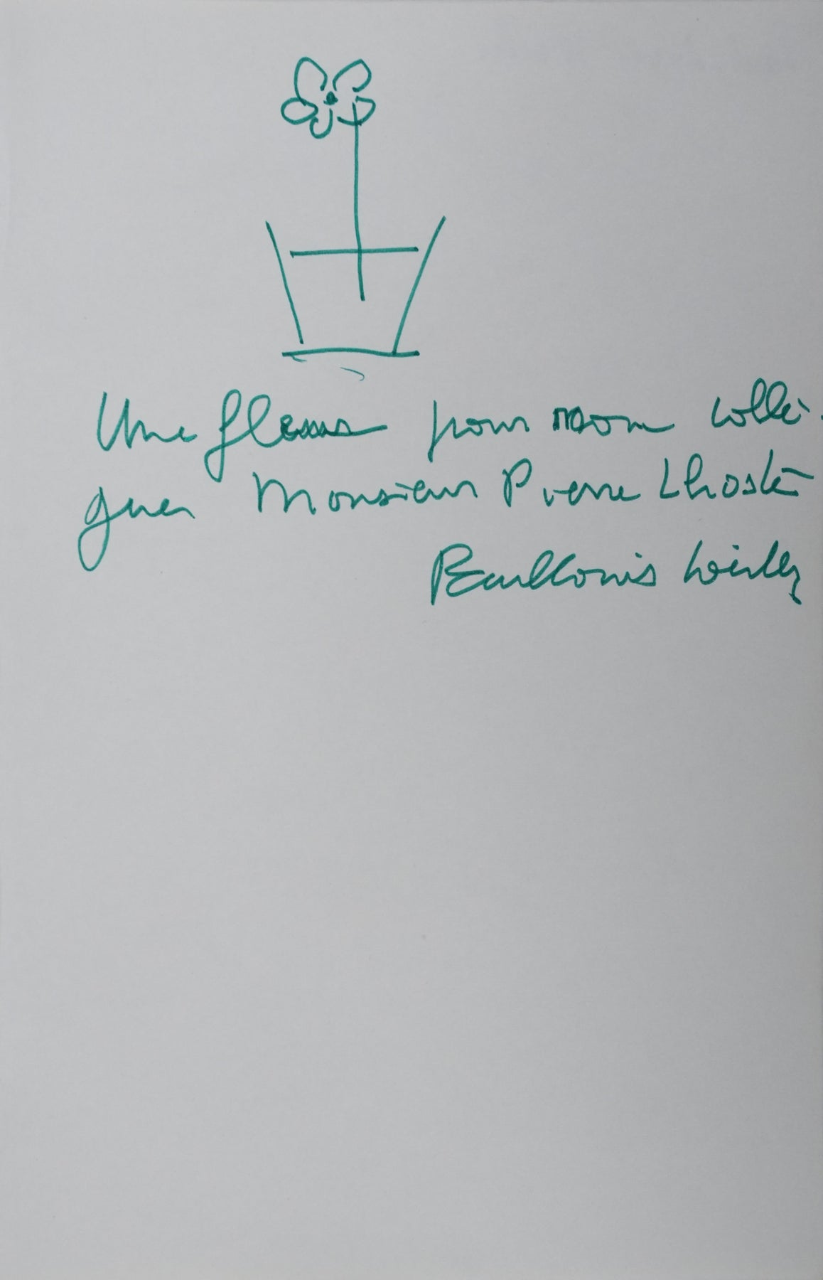 Paul-Louis WEILLER : Une fleur verte, Autographe et dessin original signé