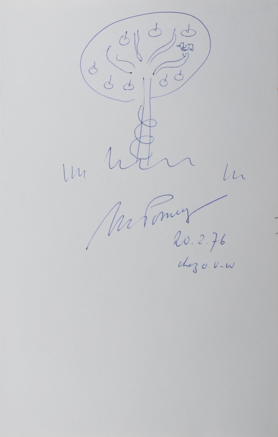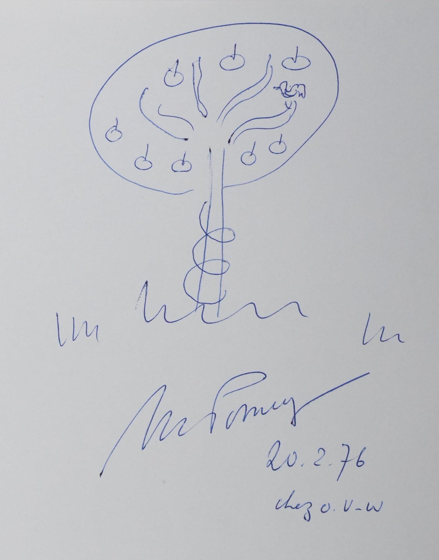PROVENANCE : Ce dessin provient de la collection personnelle de Pierre Lhoste. Journaliste de radio, Pierre Lhoste (1913-1984) demanda aux personnalités qu’il recevait de réaliser un autographe accompagné d'un dessin d’arbre, constituant ainsi un témoignage unique de ses entretiens.