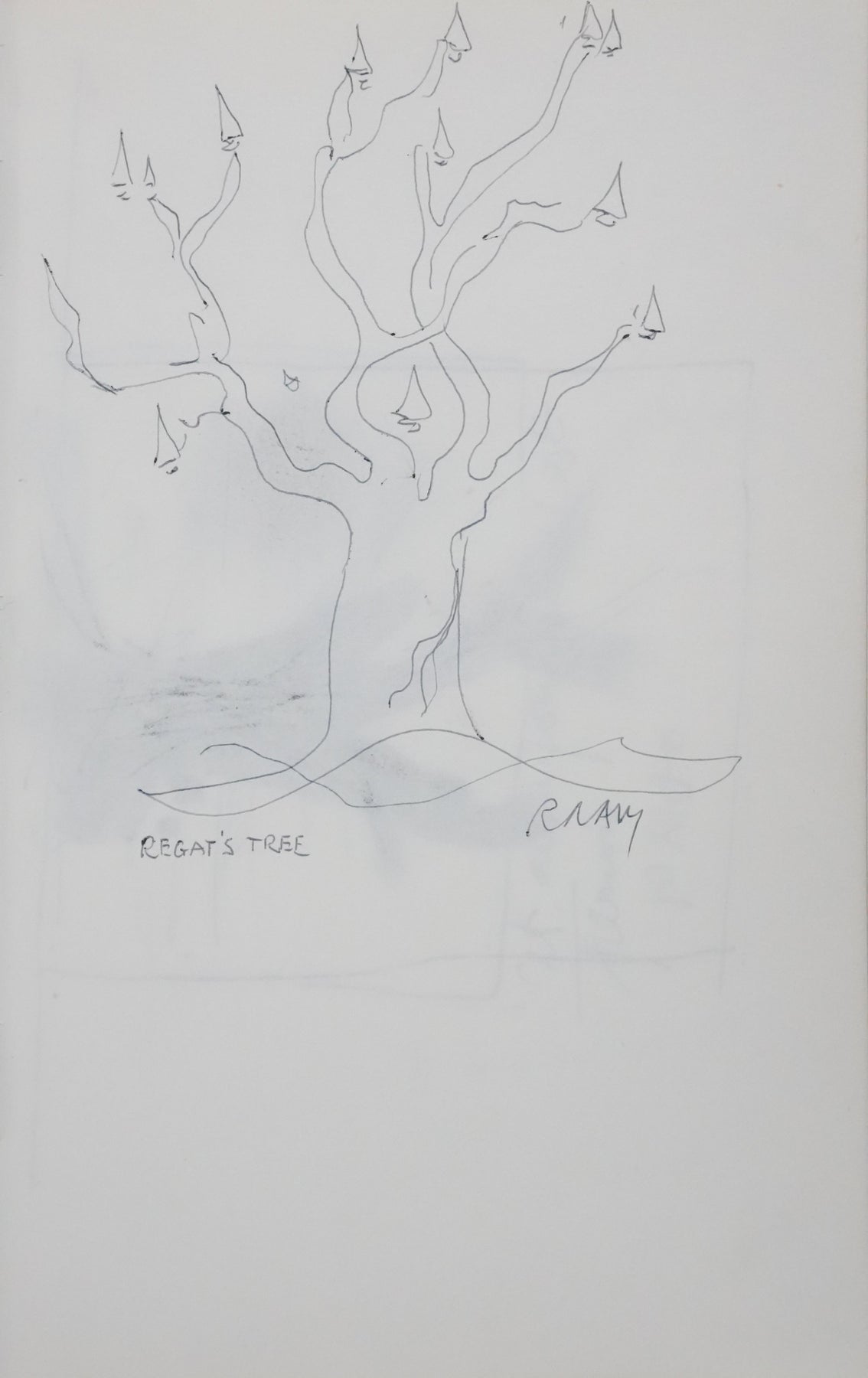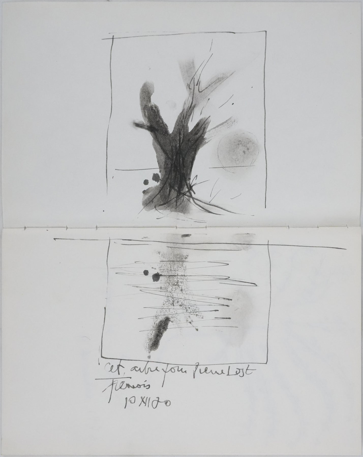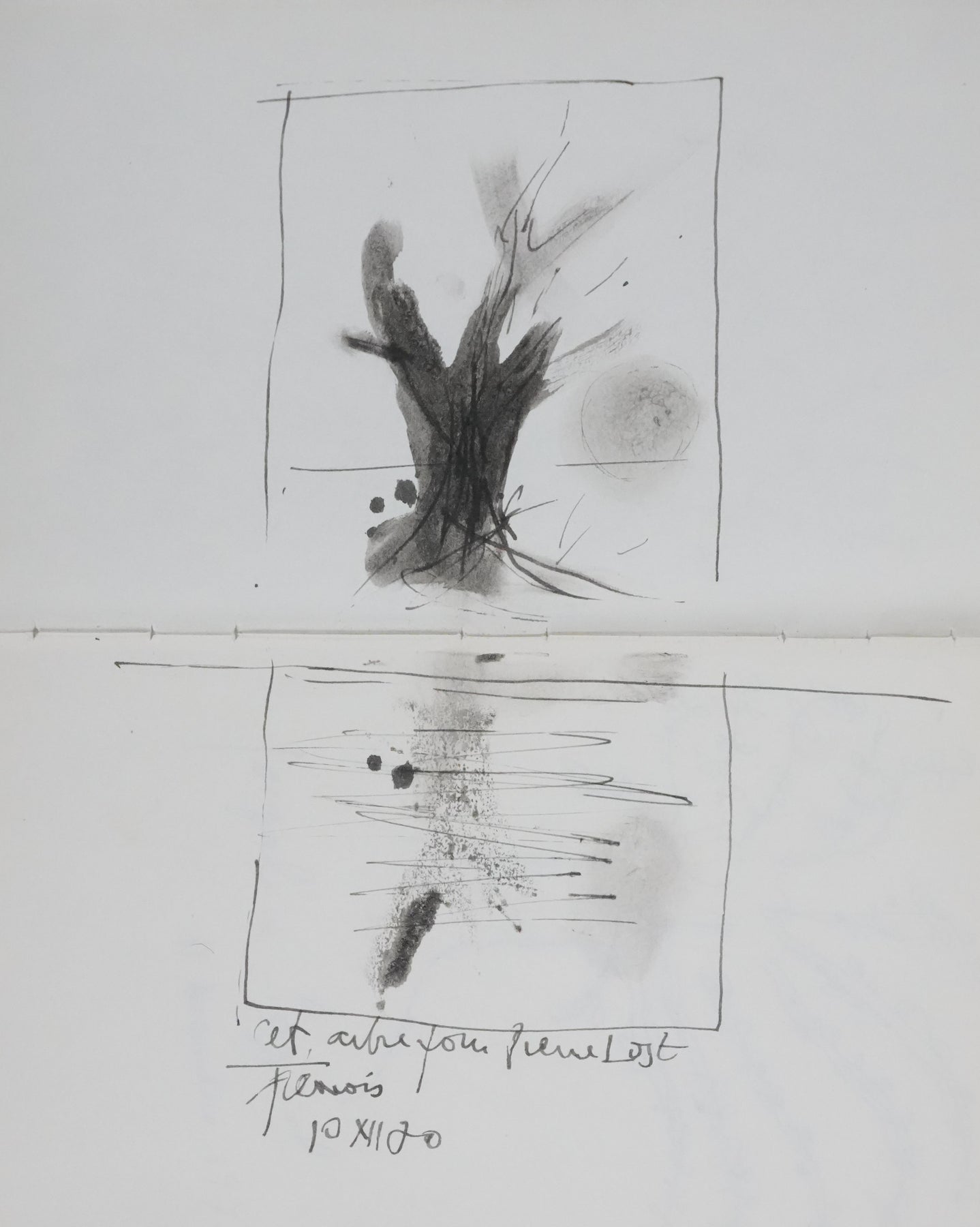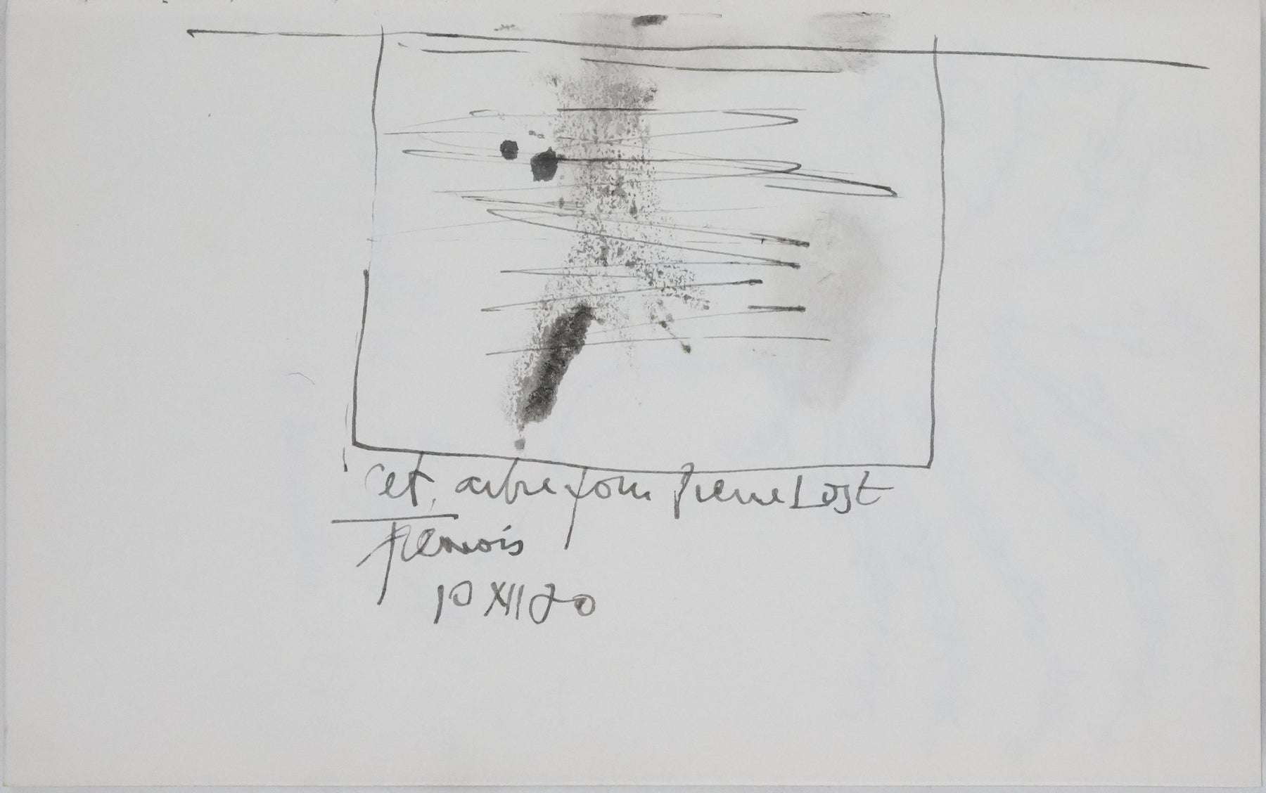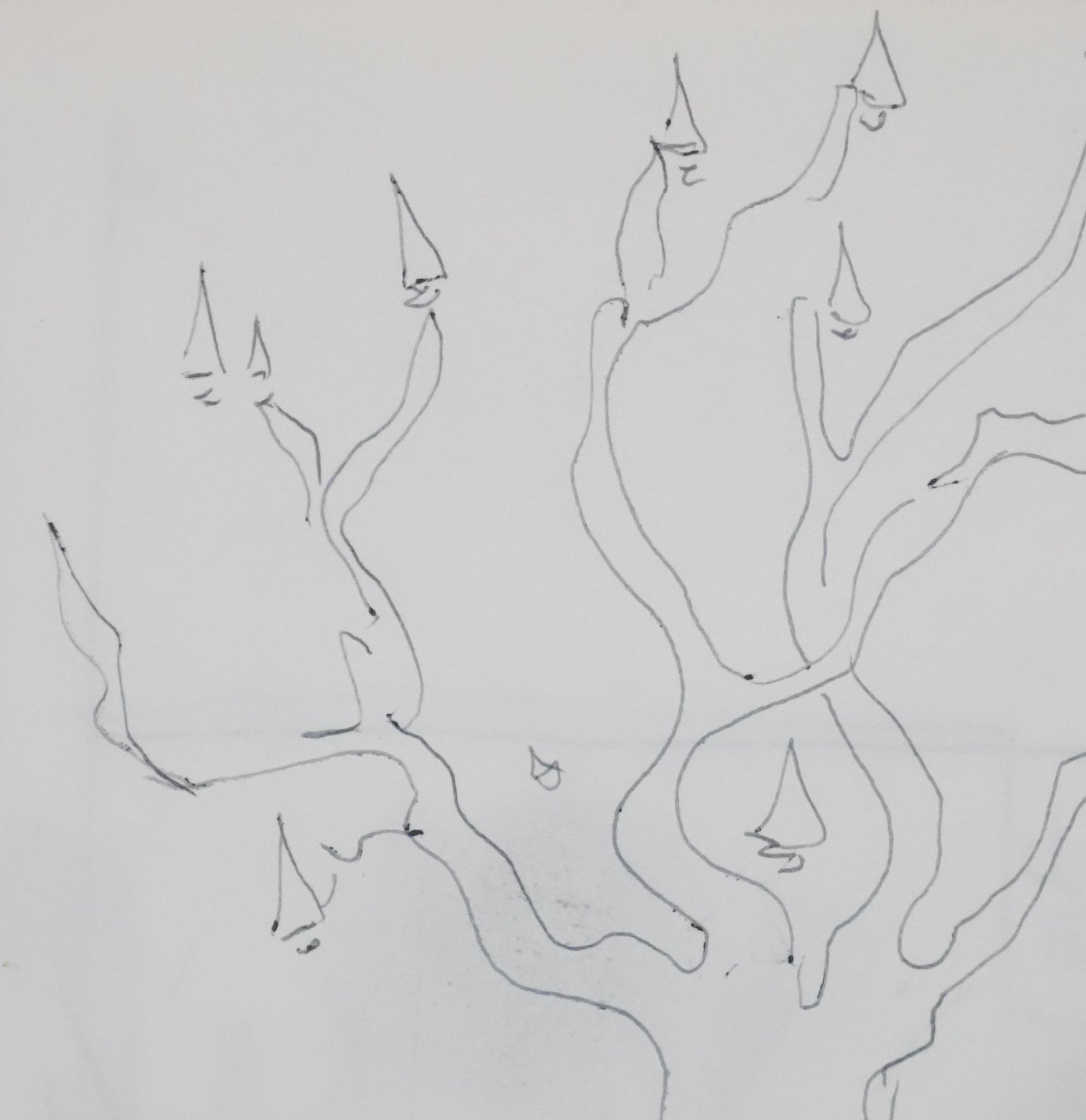 PROVENANCE : Ce dessin provient de la collection personnelle de Pierre Lhoste. Journaliste de radio, Pierre Lhoste (1913-1984) demanda aux personnalités qu’il recevait de réaliser un autographe accompagné d'un dessin d’arbre, constituant ainsi un témoignage unique de ses entretiens.