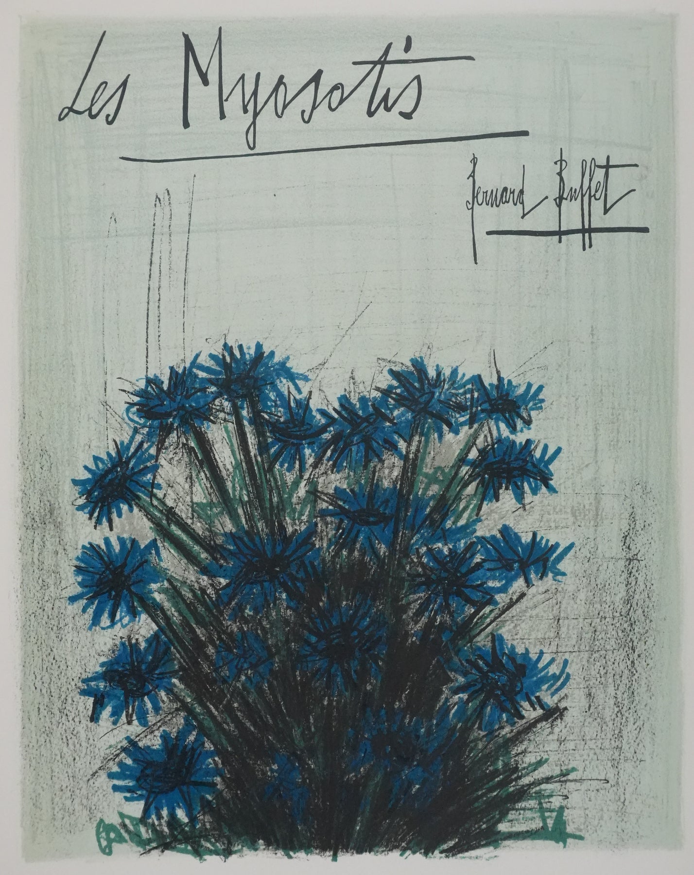 Bernard BUFFET : Les myosotis, Lithographie originale signée