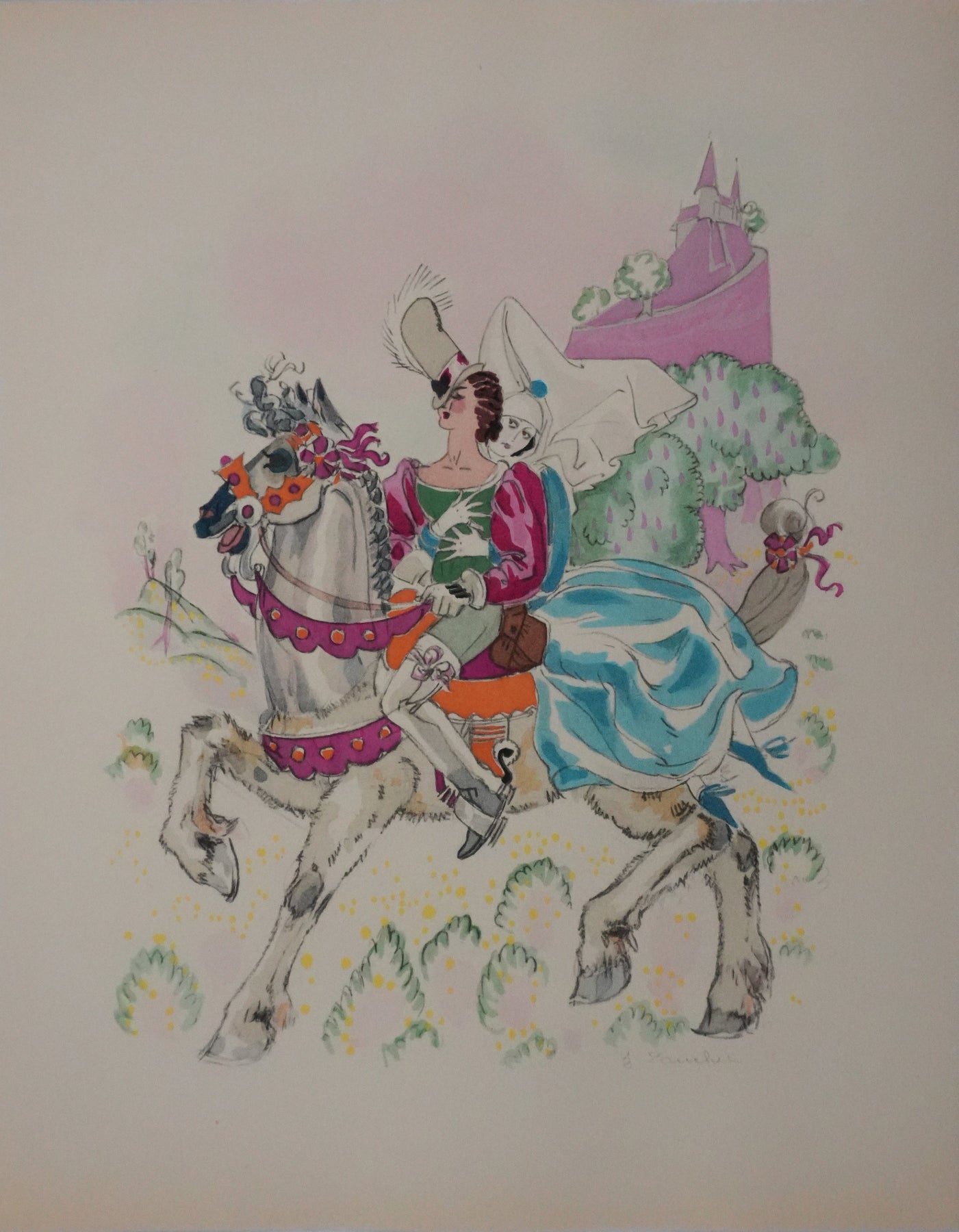 Jacques TOUCHET : Princesse et son chevalier, Lithographie originale (vue générale) - Crédit photo : Galerie Art.Paris