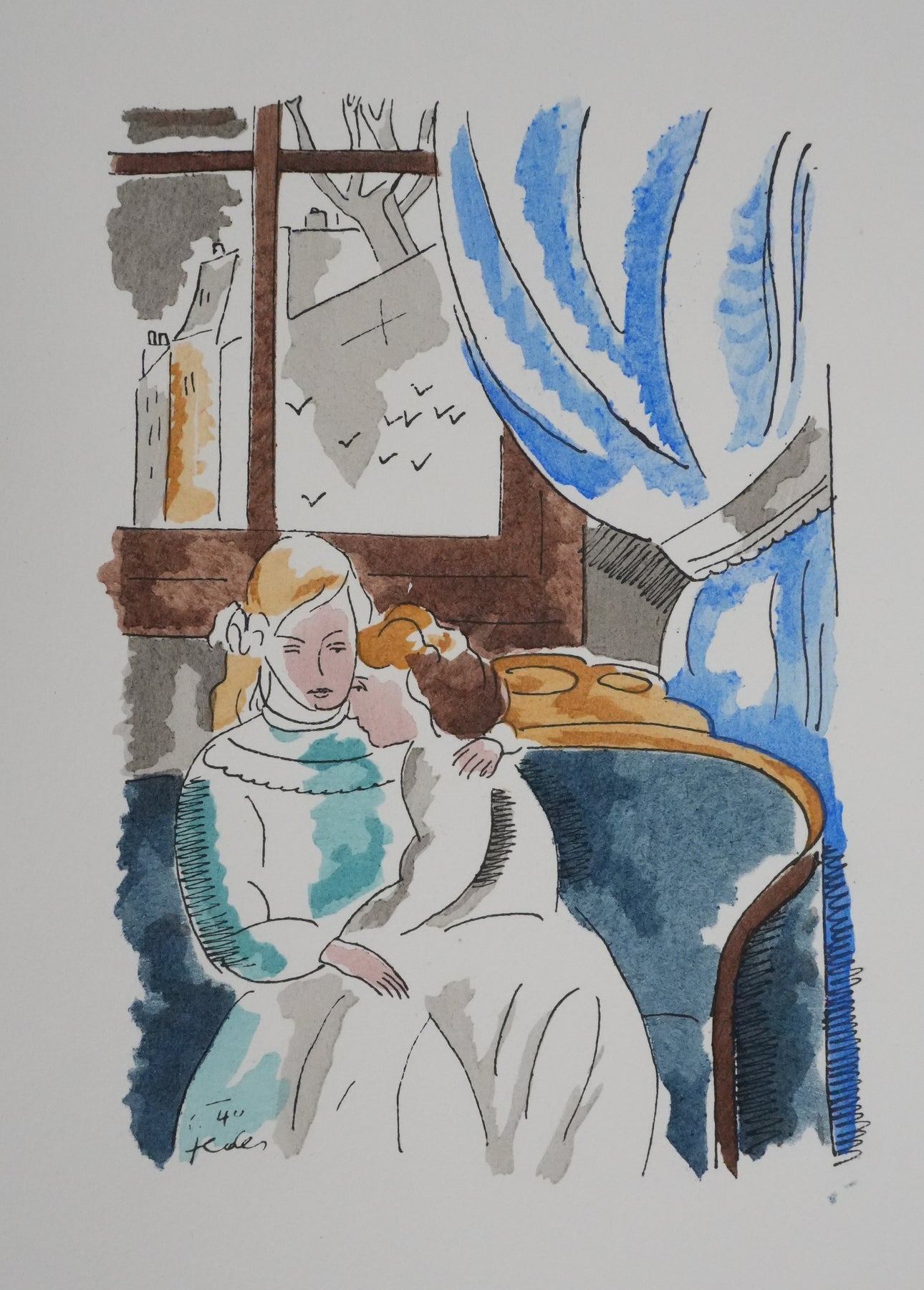 Adolphe FEDER : Enfants à l'orphelinat, Lithographie originale signée