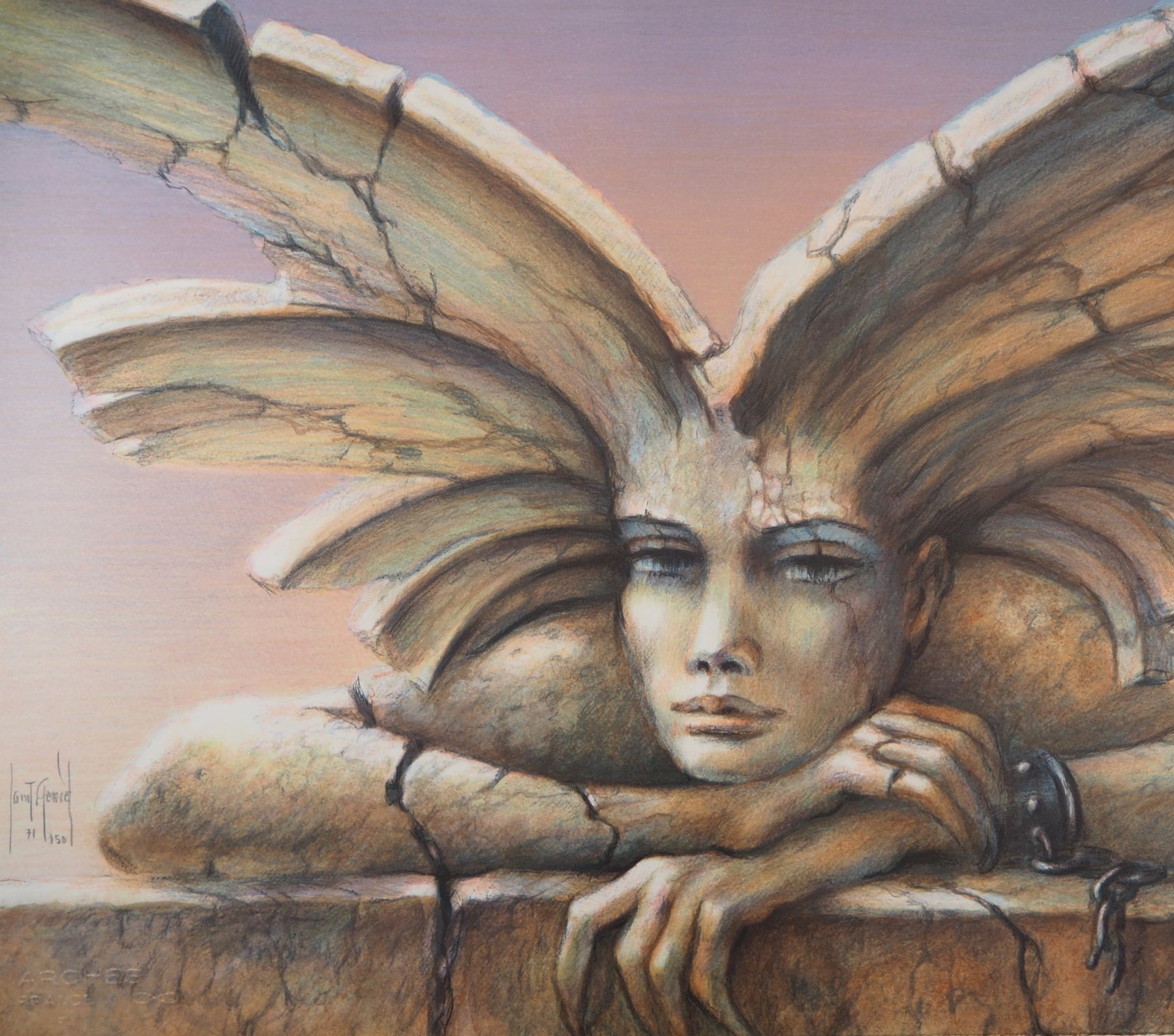 Francis DE SAINT GENIES : Énigme, Femme fatale, Lithographie originale signée