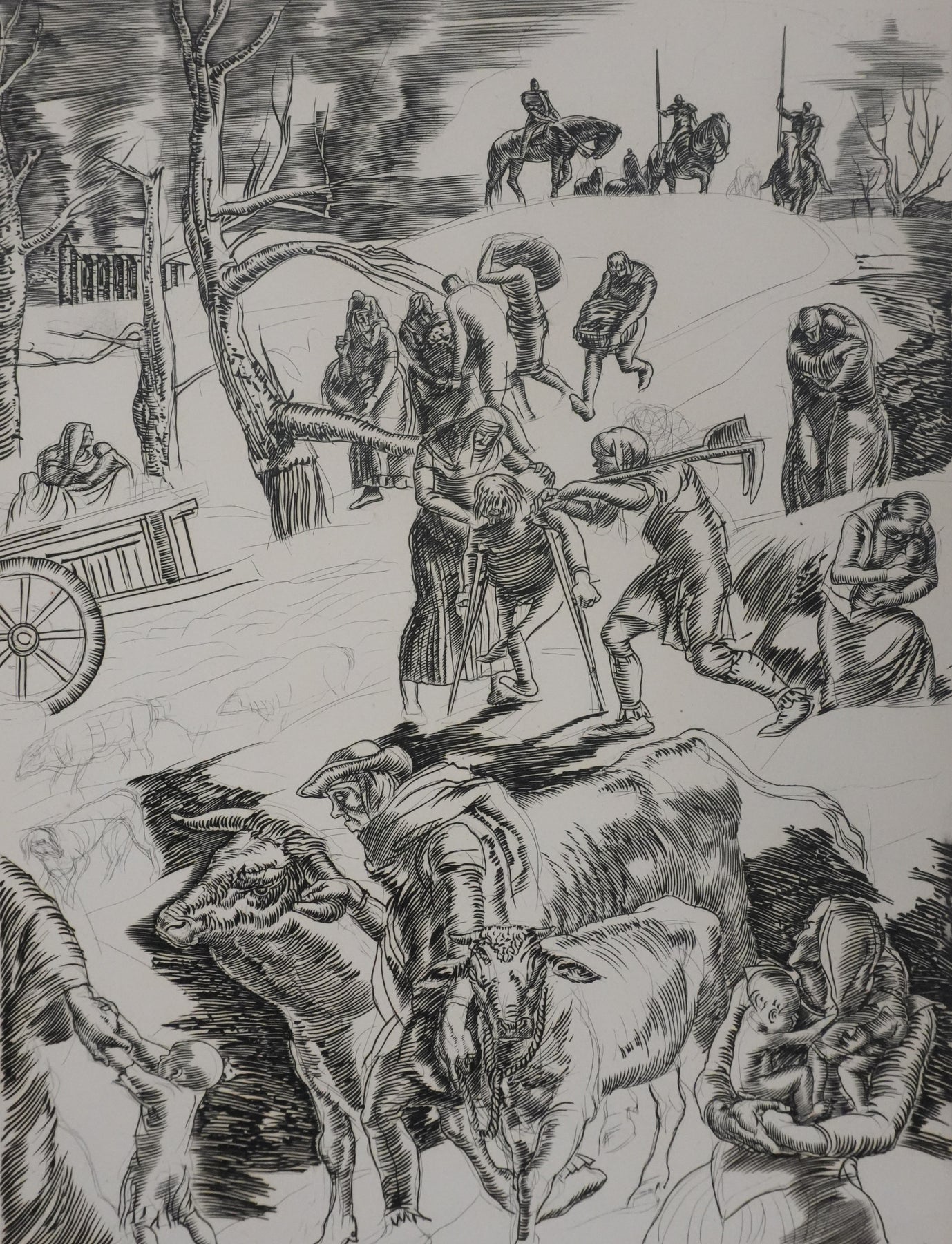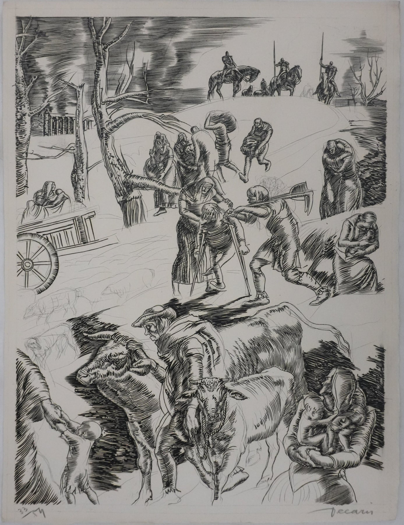 INFORMATION : Cette gravure fait partie du portefolio Discours des misères de ce temps, qui accompagne un texte de Pierre Ronsard. Edité à Paris par Le fuseau de laine.