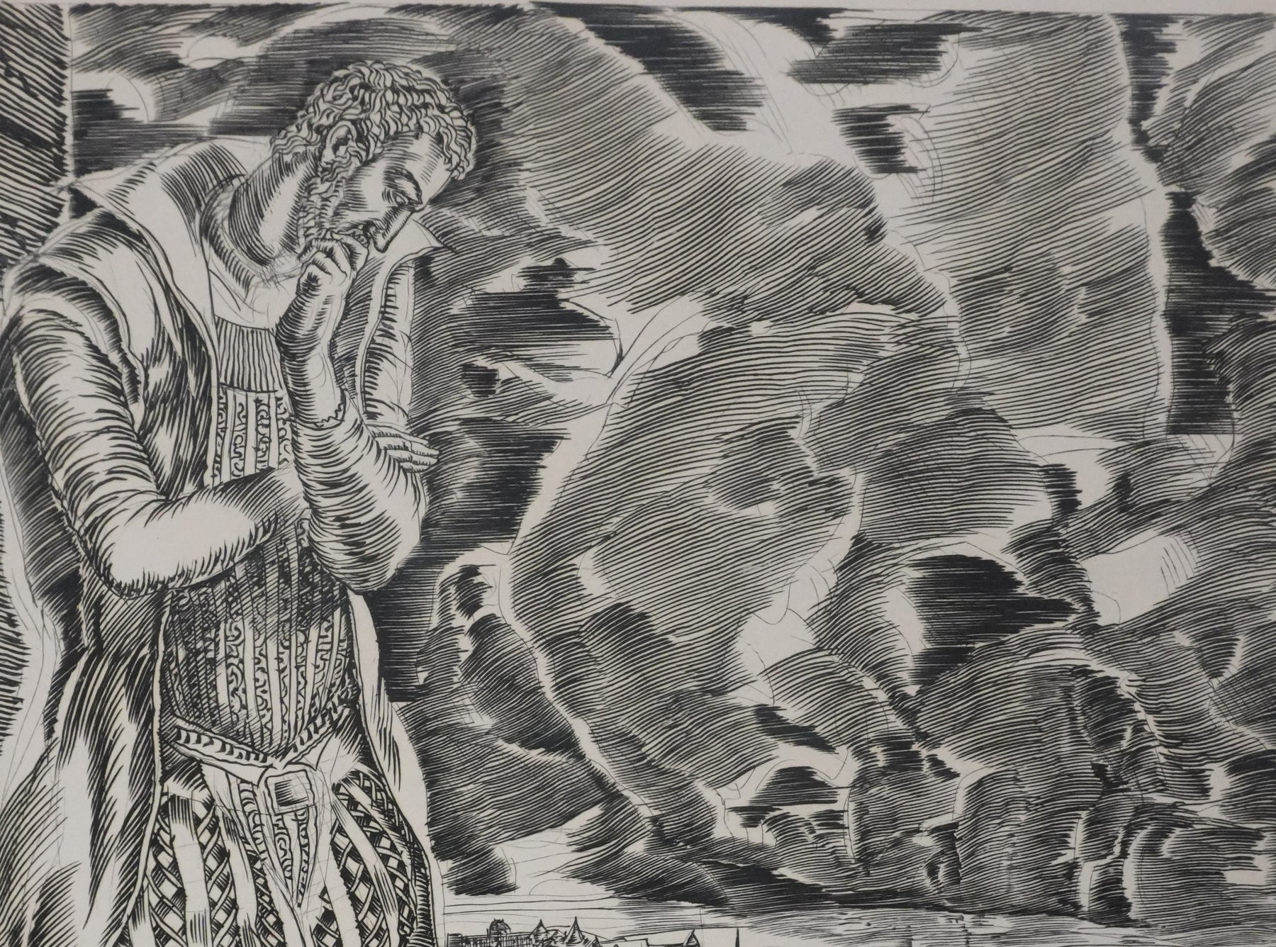 Albert DECARIS : L'homme pensif, Gravure originale signée