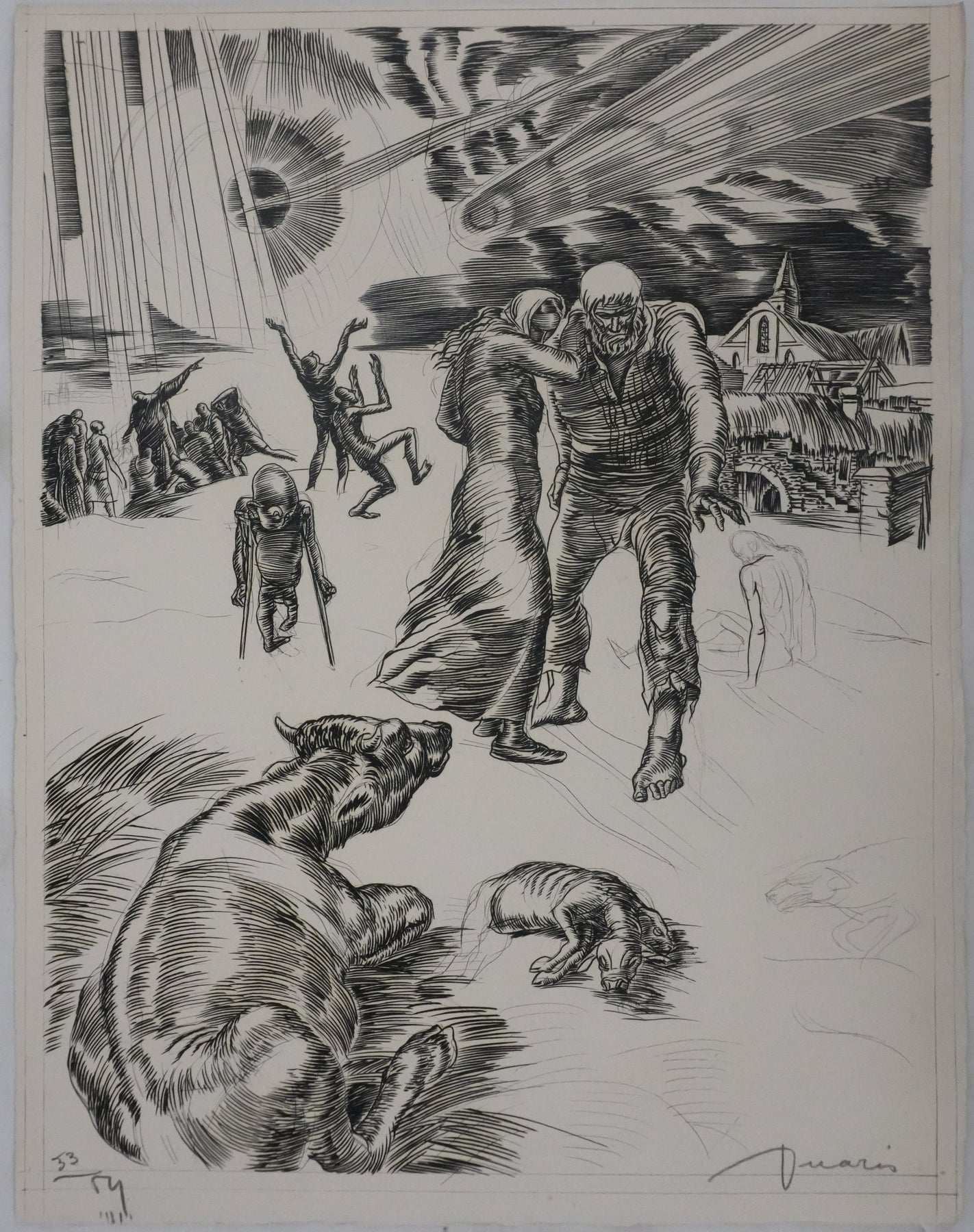 INFORMATION : Cette gravure fait partie du portefolio Discours des misères de ce temps, qui accompagne un texte de Pierre Ronsard. Edité à Paris par Le fuseau de laine.