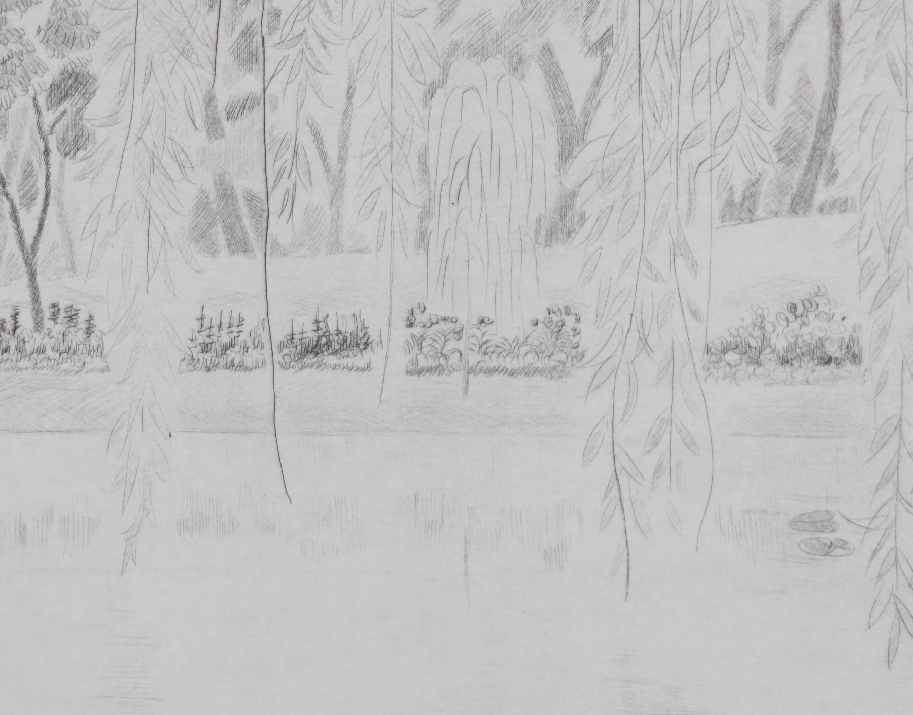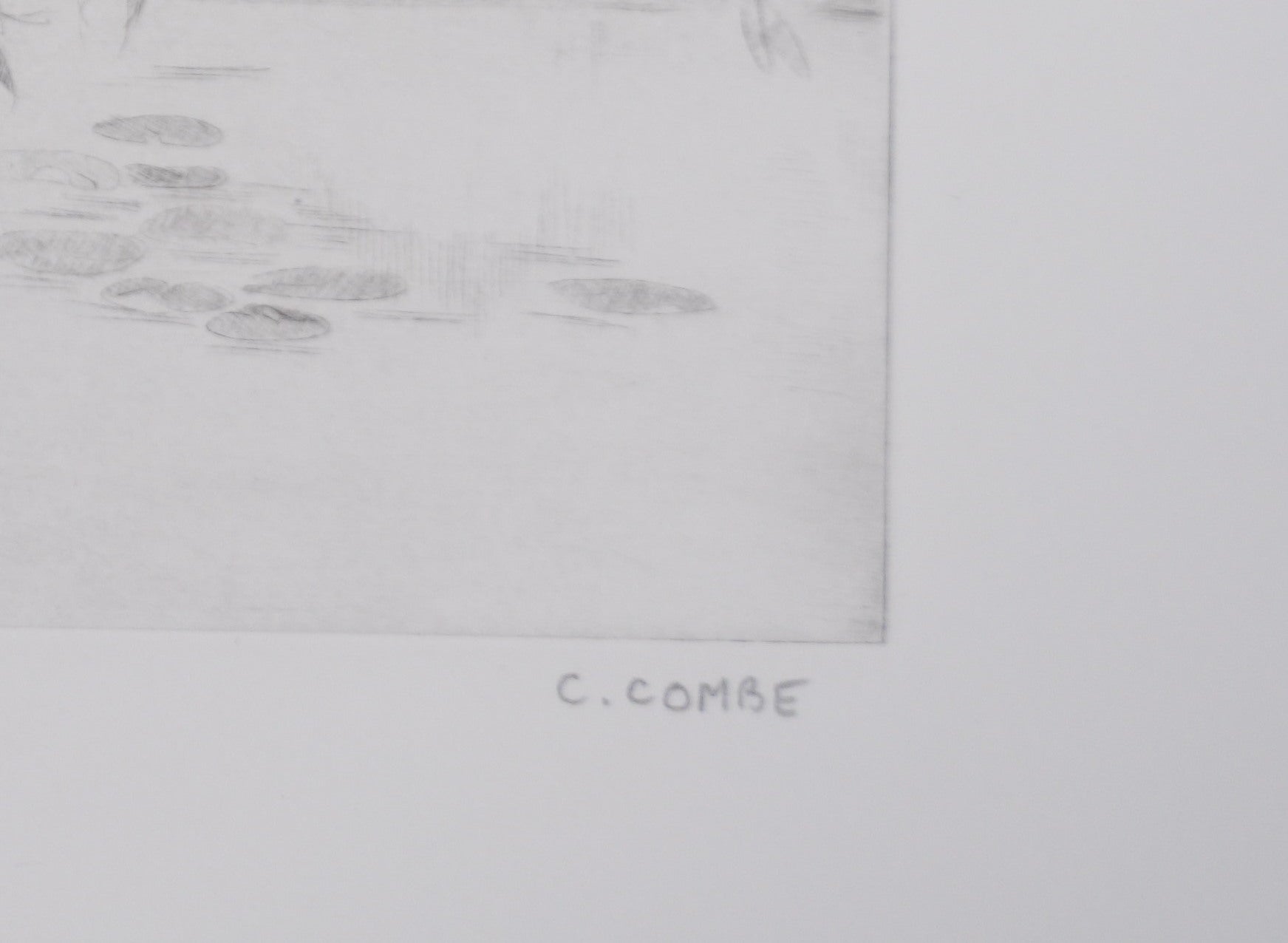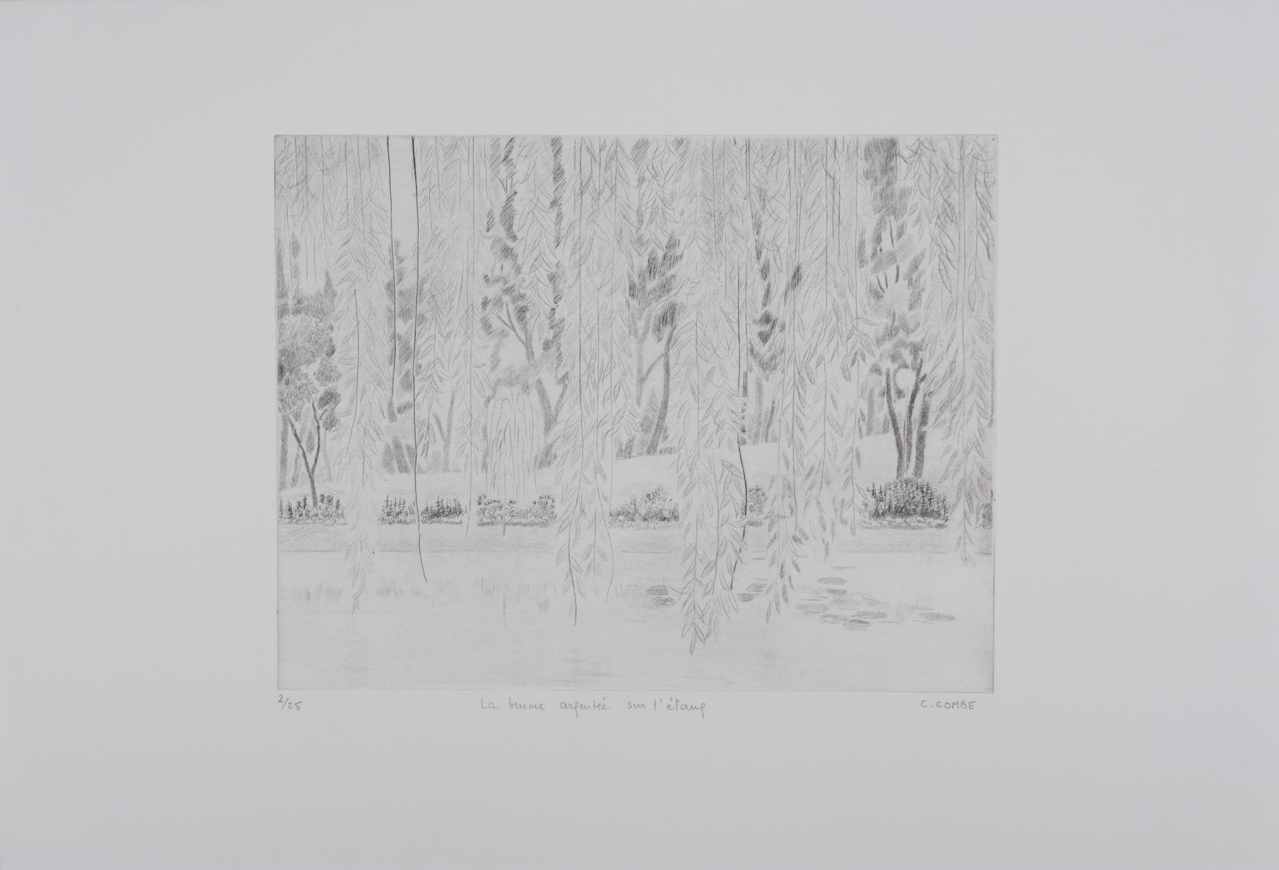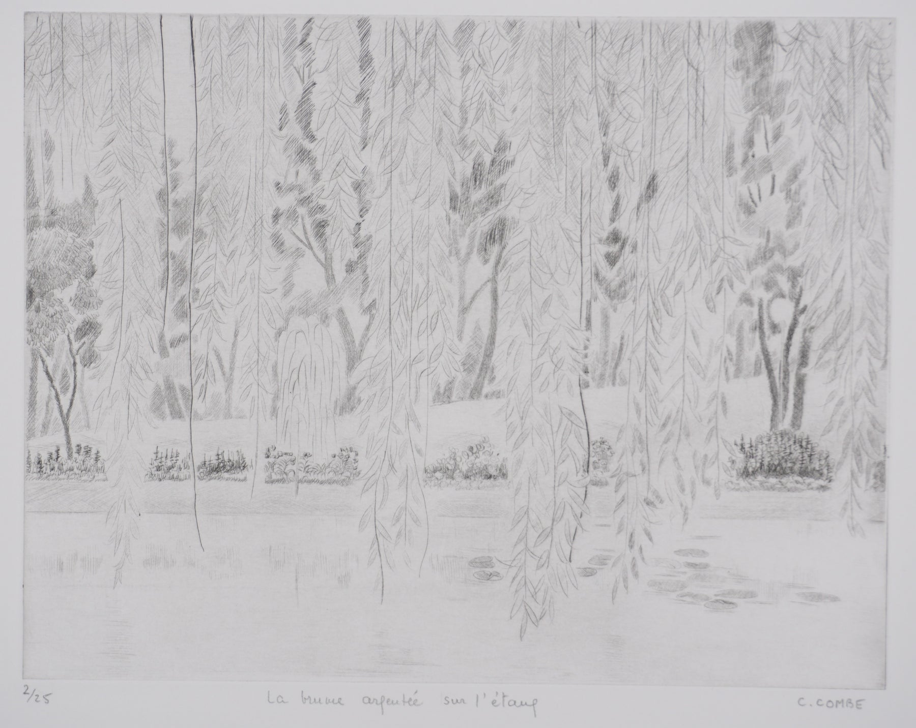 Camille COMBE : La brume argentée sur l'étang, Gravure originale signée