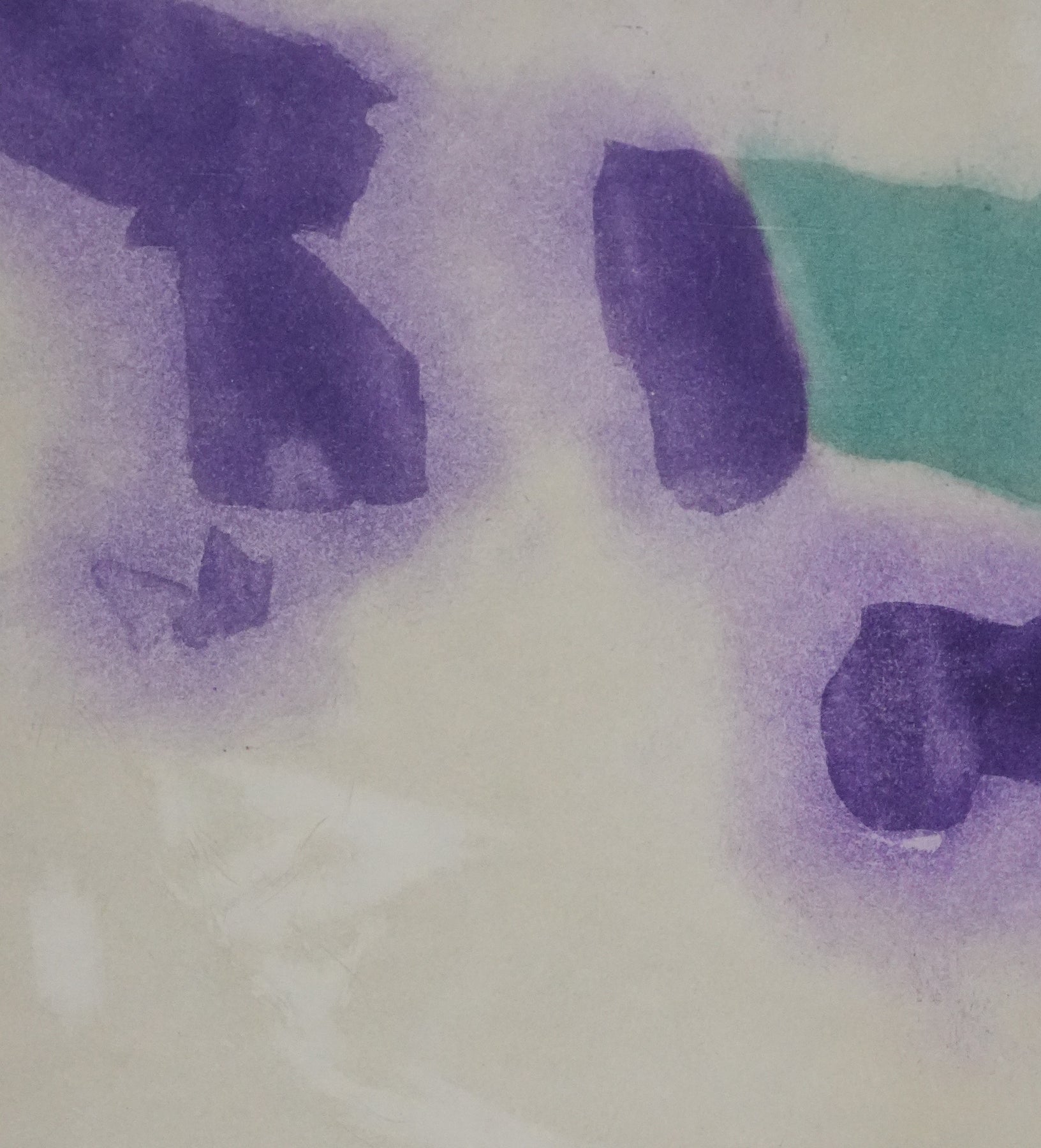 INFORMATION : Cette gravure a été créée pour le portefolio L'étang (poème de Jean Lescure) et publié en 1972 par les Editions Galanis. Il s'agit ici d'une épreuve d'état pour le troisième passage de couleur.