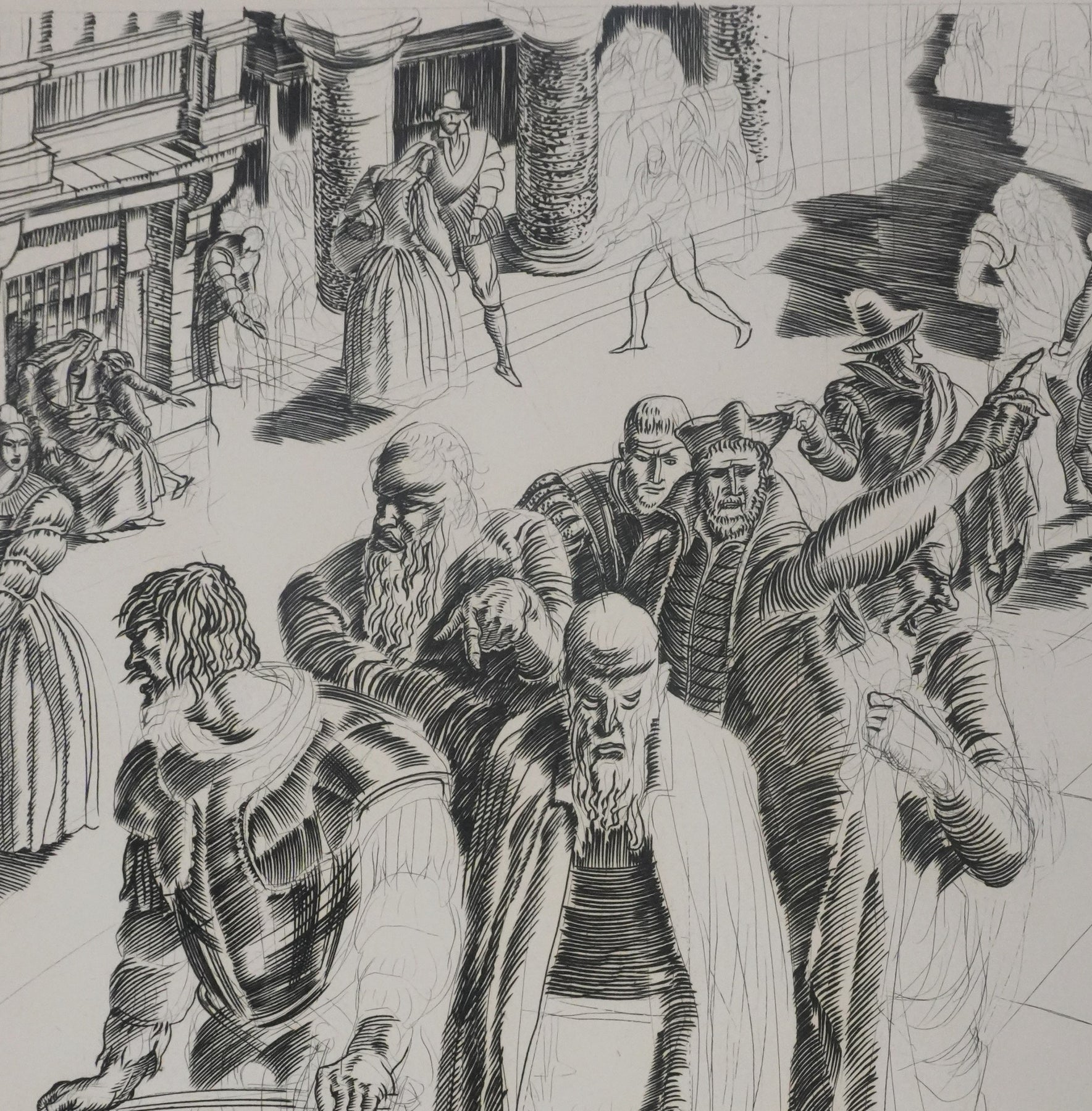 INFORMATION : Cette gravure fait partie du portefolio Discours des misères de ce temps, qui accompagne un texte de Pierre Ronsard. Edité à Paris par Le fuseau de laine.