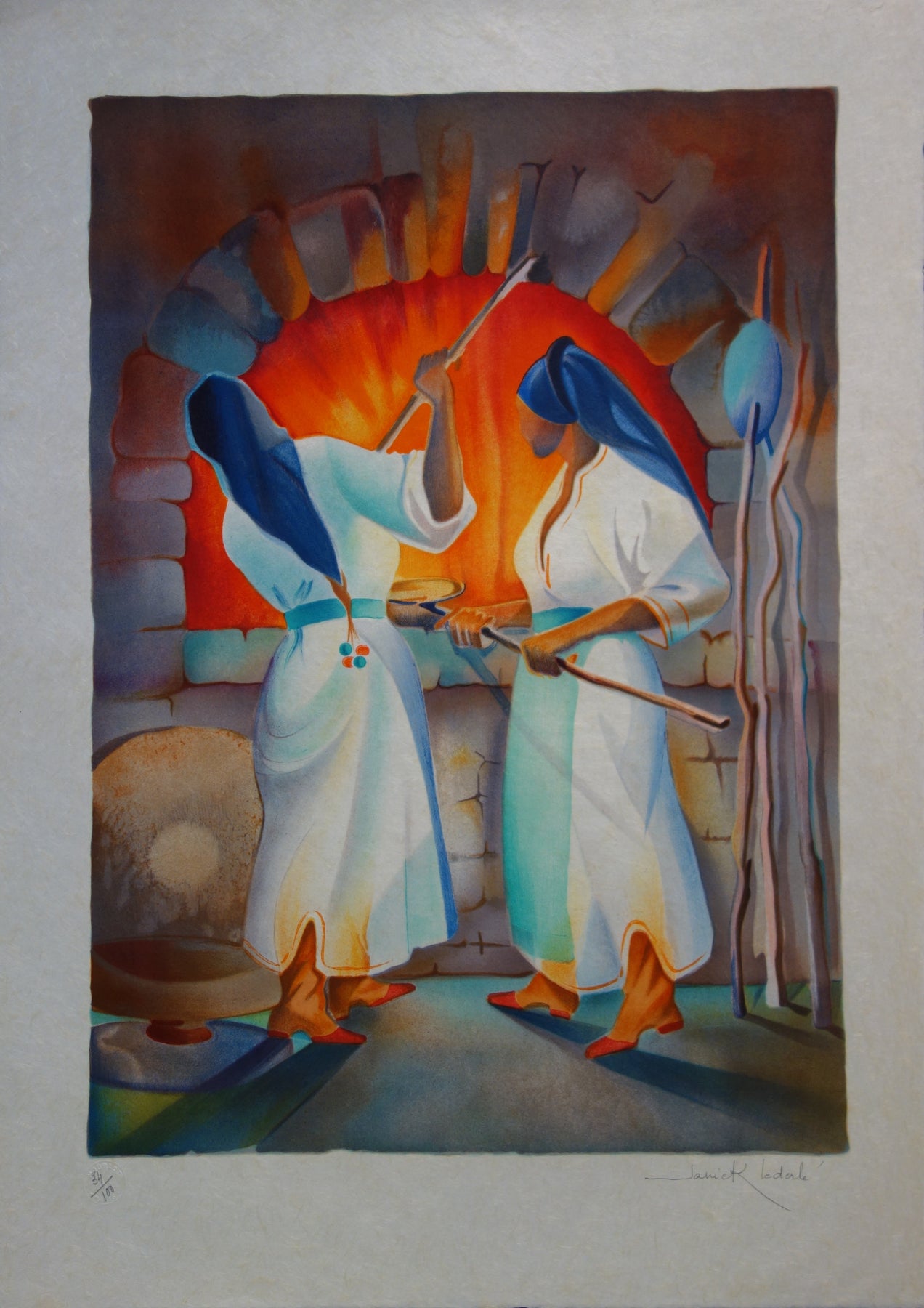Janick LEDERLE : Femmes de Mykonos - Lithographie (détail)