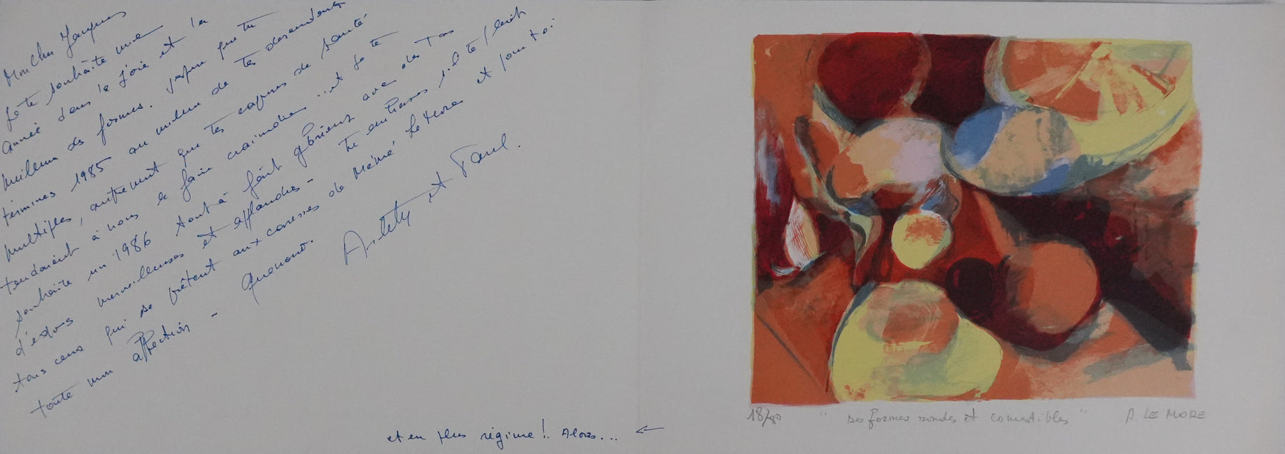 INFORMATION : Texte au dos. Carte de vœux envoyé par l'artiste pour l'année 1985.