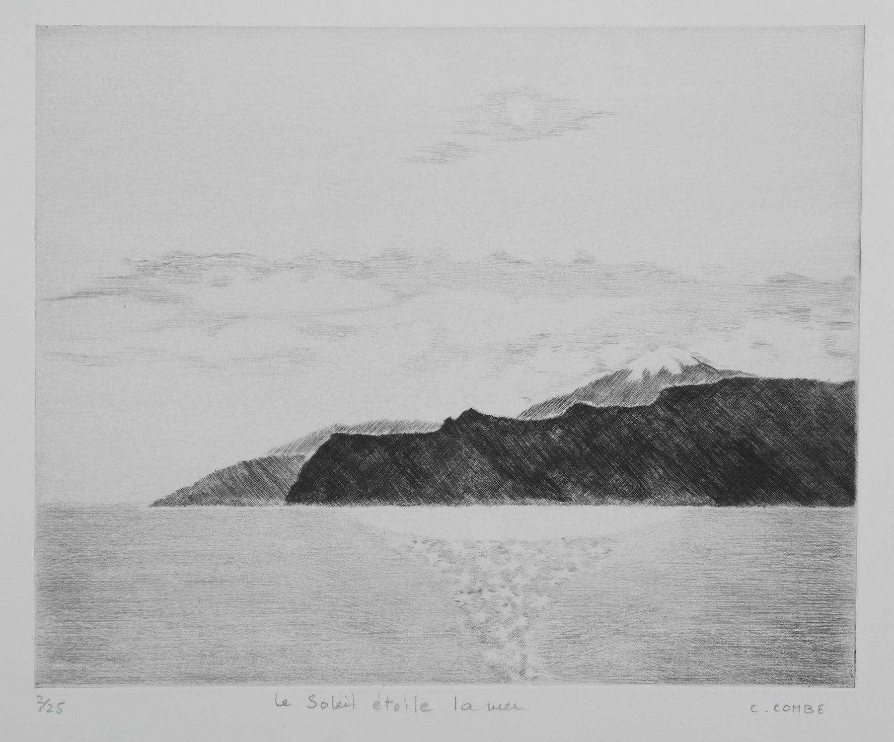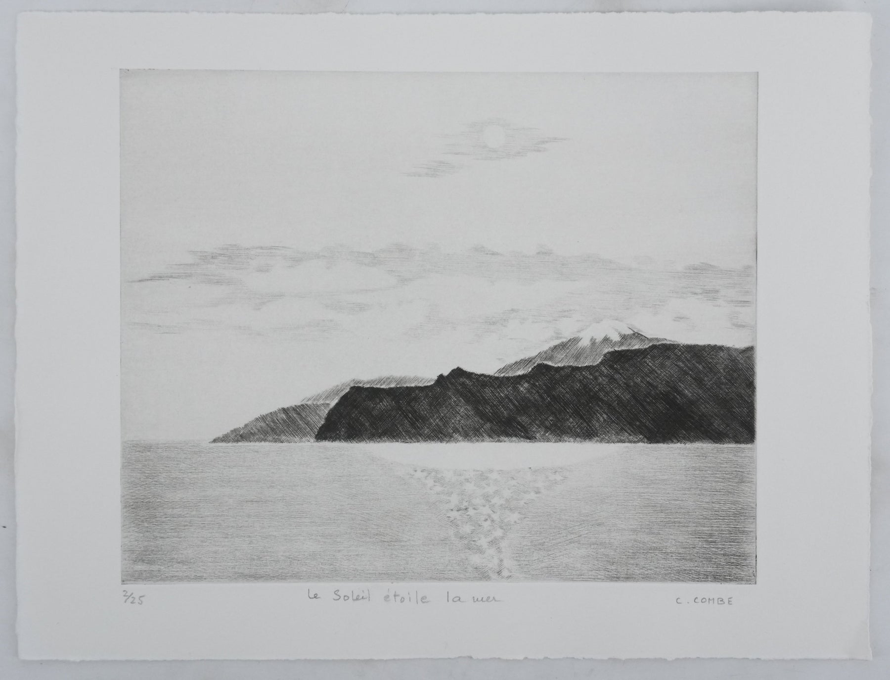 Camille COMBE : Le soleil étoile la mer, Gravure originale signée
