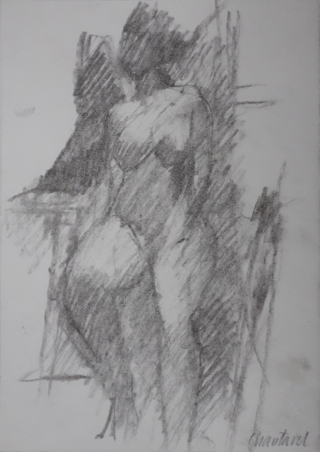 Jacques CHANTAREL : Nu de face, Dessin original signé