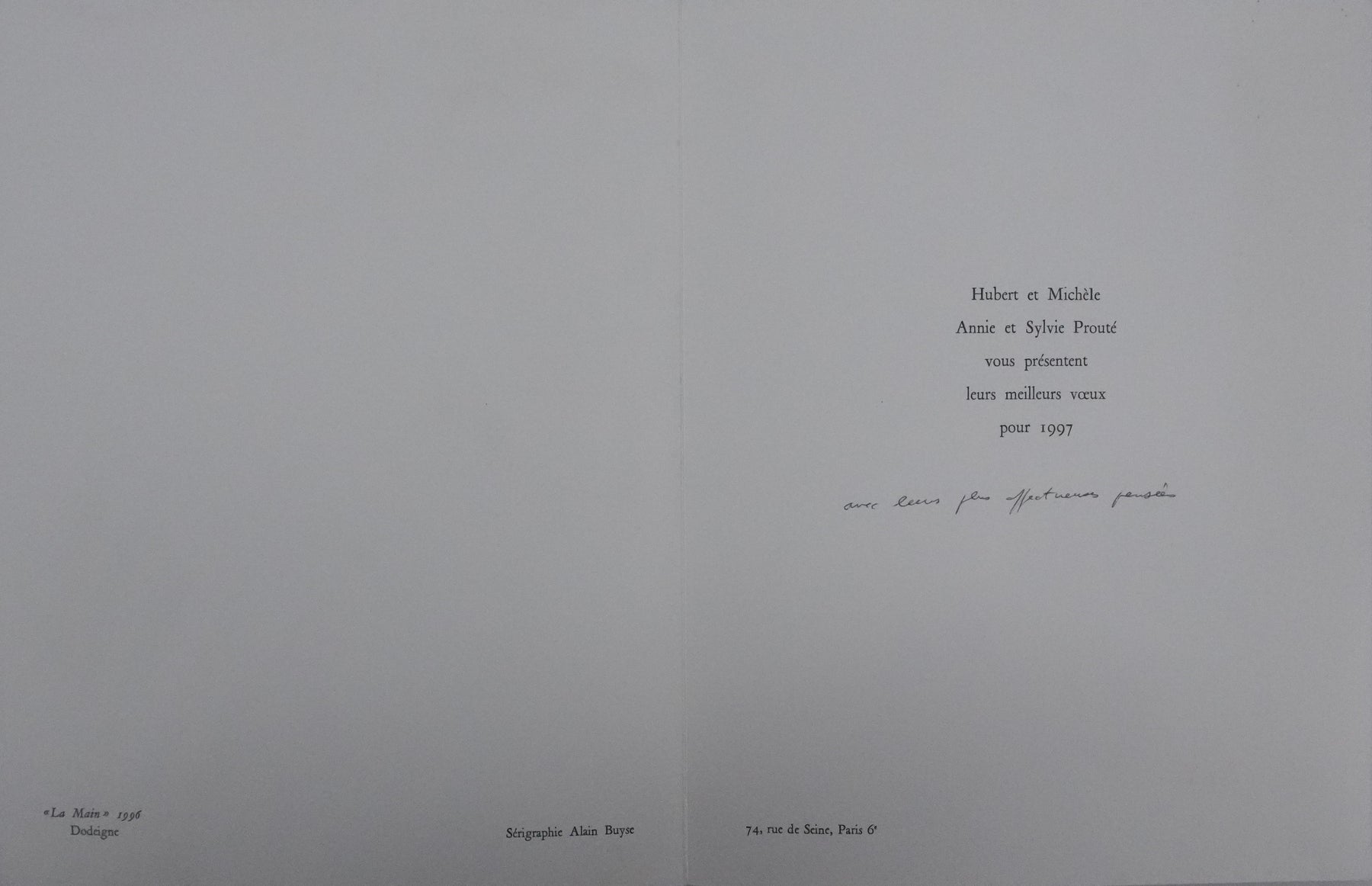 INFORMATION : Créée en hommage au sculpteur français Eugène Dodeigne. Carte de vœux de la Galerie Prouté pour l'année 1997
