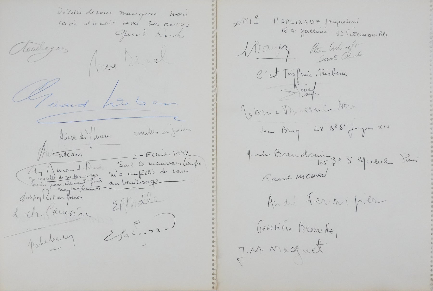 PROVENANCE : Livre d'or de la galerie Lucie Weill (Paris) en 1972. Ensemble d'autographes laissés lors d'une exposition de Ginette Signac.