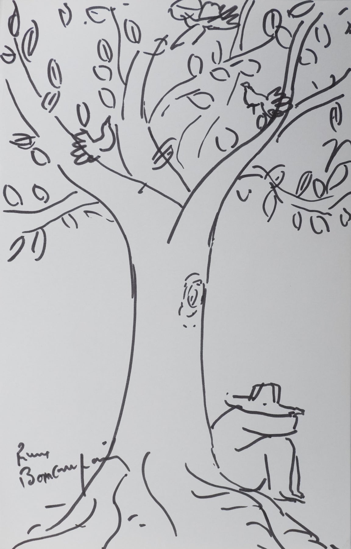 PROVENANCE : Ce dessin provient de la collection personnelle de Pierre Lhoste. Journaliste de radio, Pierre Lhoste (1913-1984) demanda aux personnalités qu’il recevait de réaliser un autographe accompagné d'un dessin d’arbre, constituant ainsi un témoignage unique de ses entretiens.