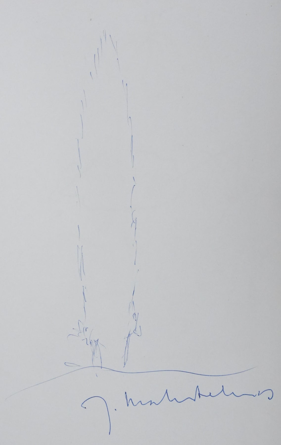 PROVENANCE : Ce dessin provient de la collection personnelle de Pierre Lhoste. Journaliste de radio, Pierre Lhoste (1913-1984) demanda aux personnalités qu’il recevait de réaliser un autographe accompagné d'un dessin d’arbre, constituant ainsi un témoignage unique de ses entretiens.