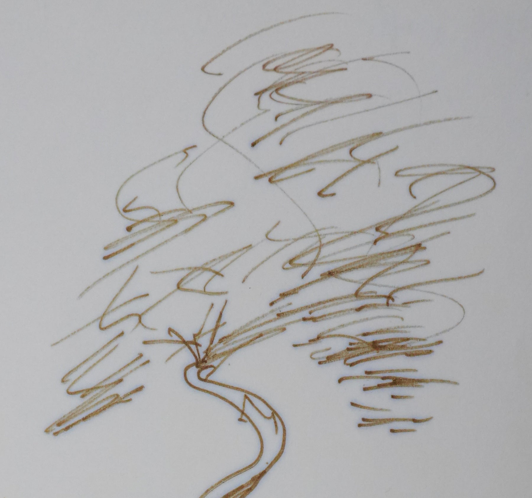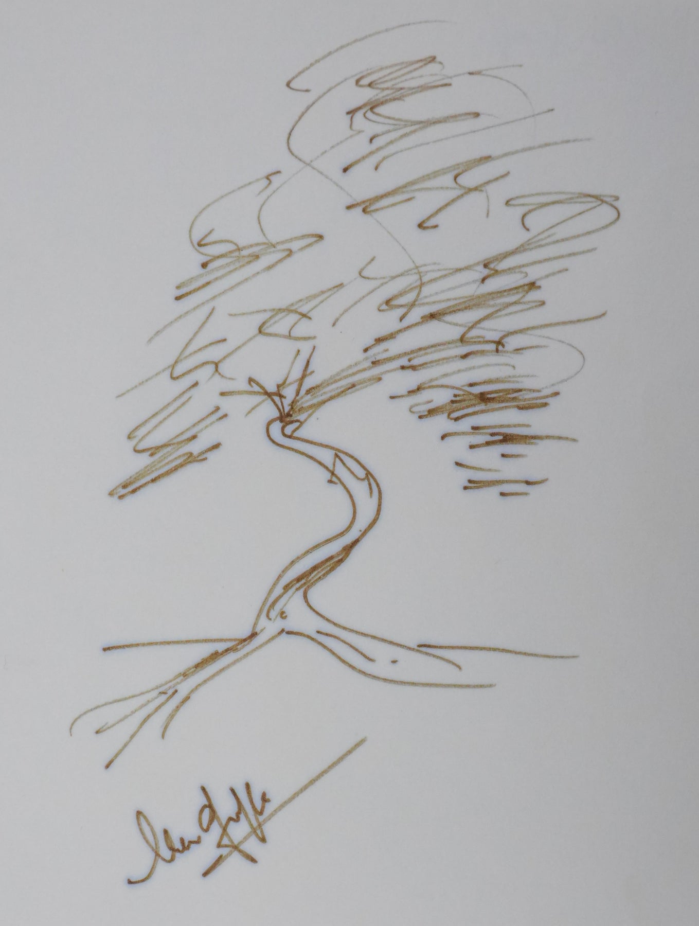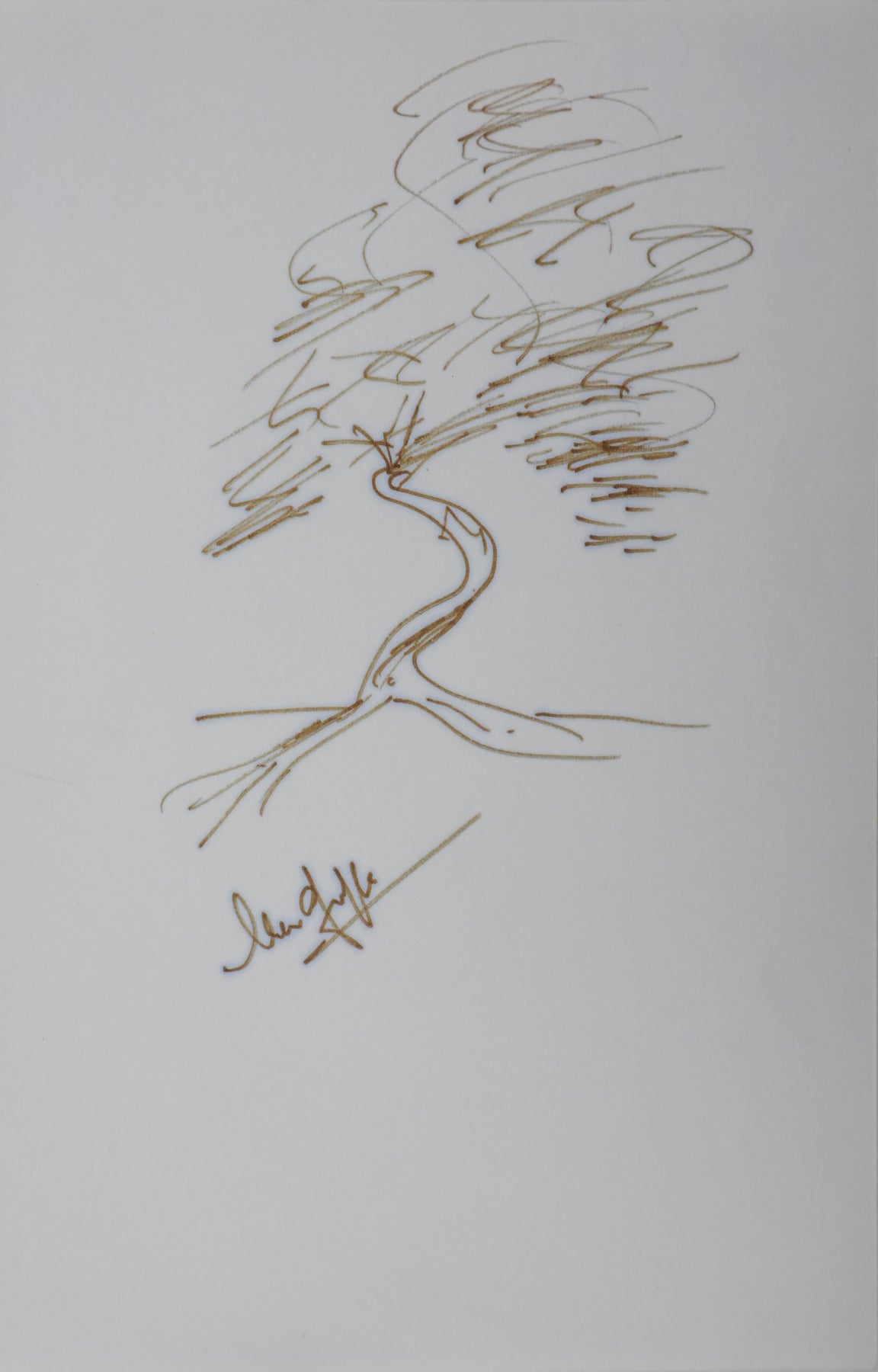 PROVENANCE : Ce dessin provient de la collection personnelle de Pierre Lhoste. Journaliste de radio, Pierre Lhoste (1913-1984) demanda aux personnalités qu’il recevait de réaliser un autographe accompagné d'un dessin d’arbre, constituant ainsi un témoignage unique de ses entretiens.