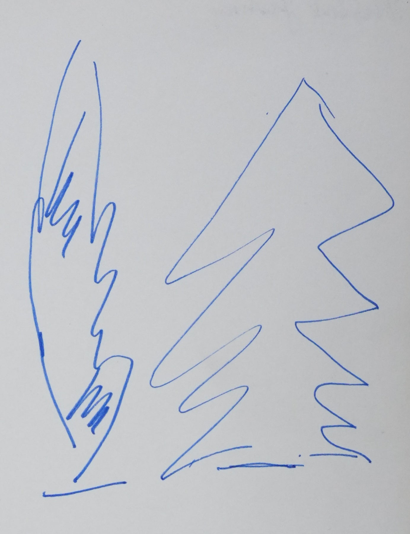 PROVENANCE : Ce dessin provient de la collection personnelle de Pierre Lhoste. Journaliste de radio, Pierre Lhoste (1913-1984) demanda aux personnalités qu’il recevait de réaliser un autographe accompagné d'un dessin d’arbre, constituant ainsi un témoignage unique de ses entretiens.
