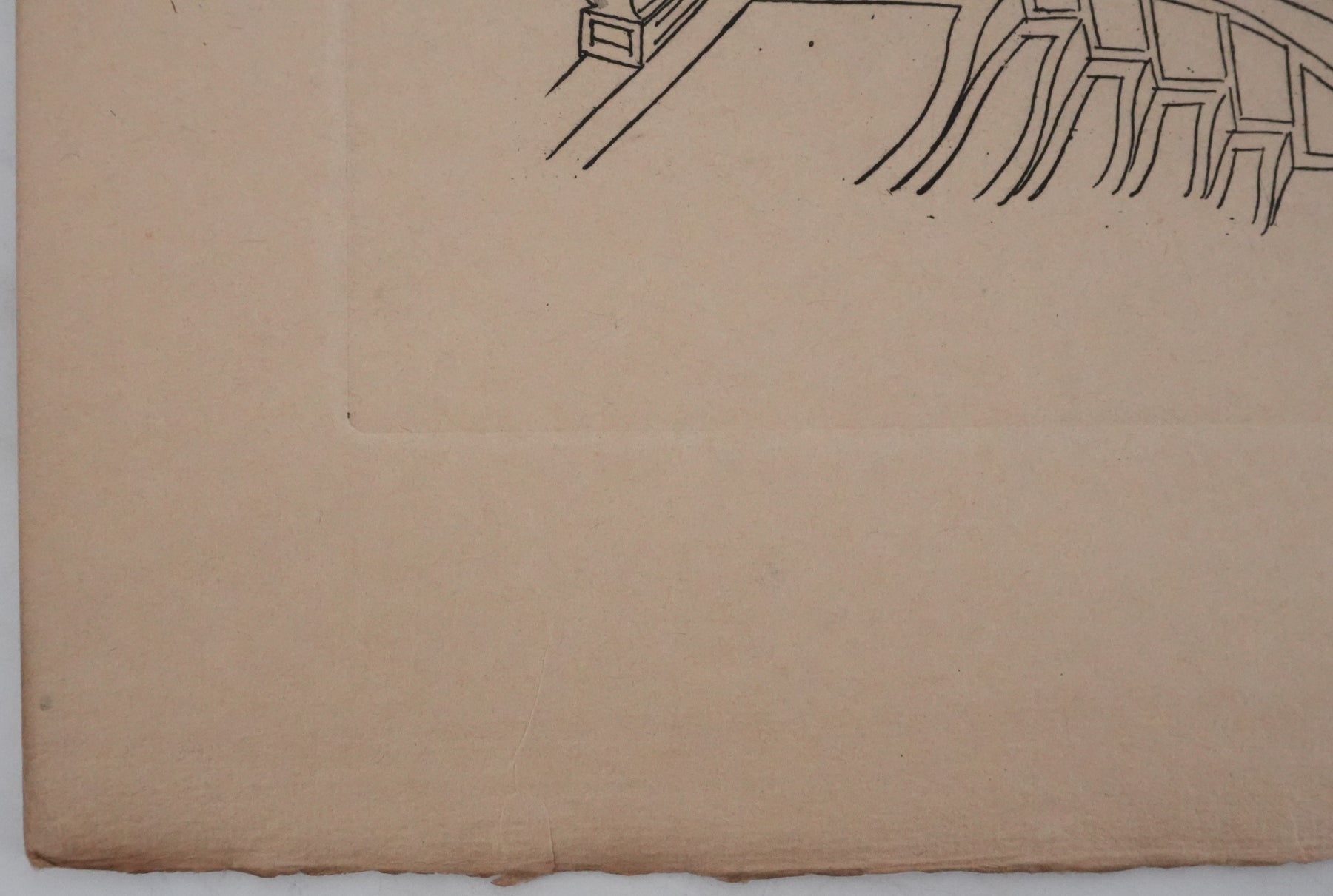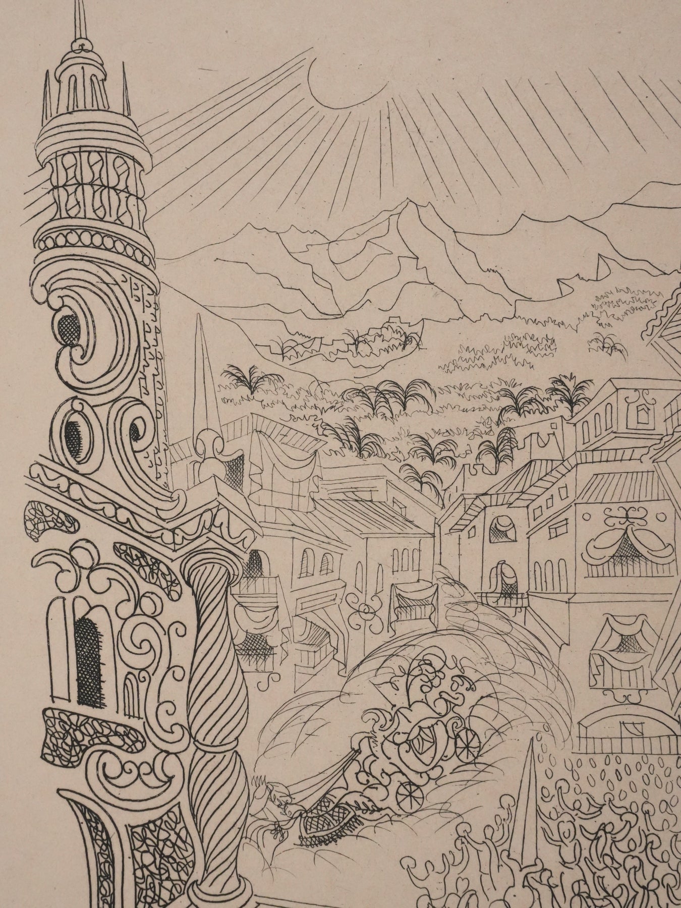 INFORMATION : Gravure créée pour illustrer l'ouvrage Le Carrosse du Saint Sacrement (pièce de théâtre de Prosper Mérimée), édité par René Kieffer (Paris). Il s'agit ici de l'état noir.