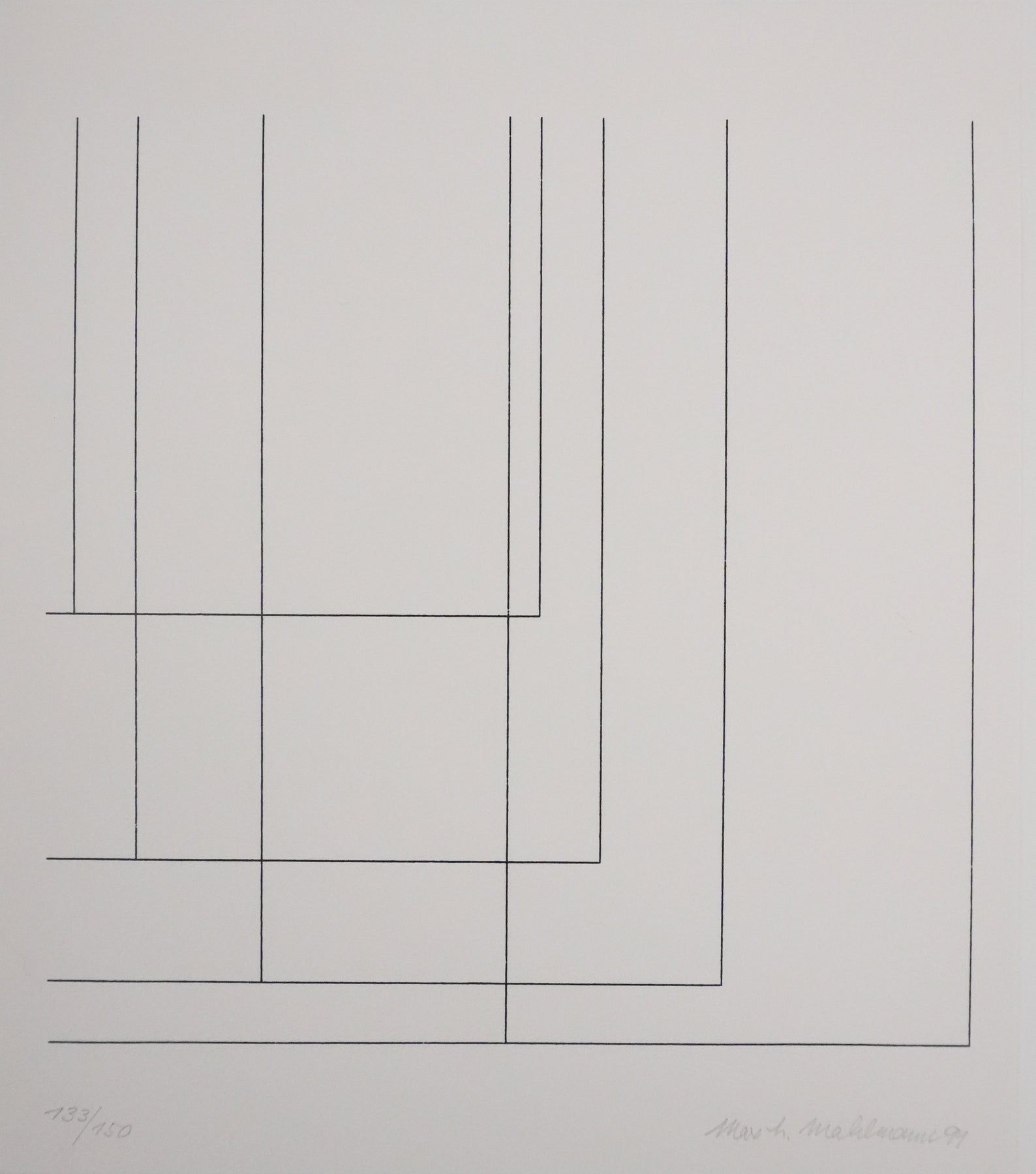 Composition aux traits noirs sur fond blanc, 1991