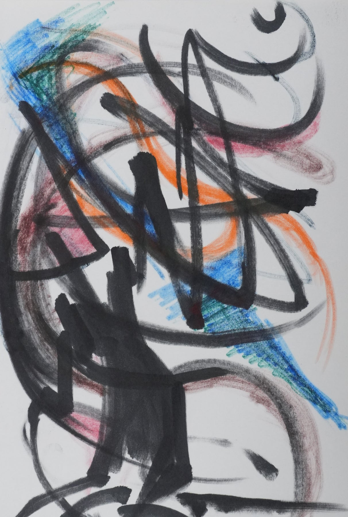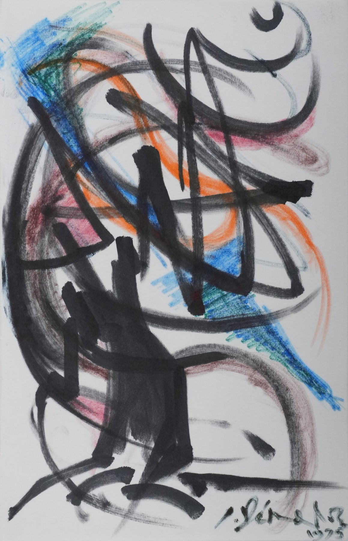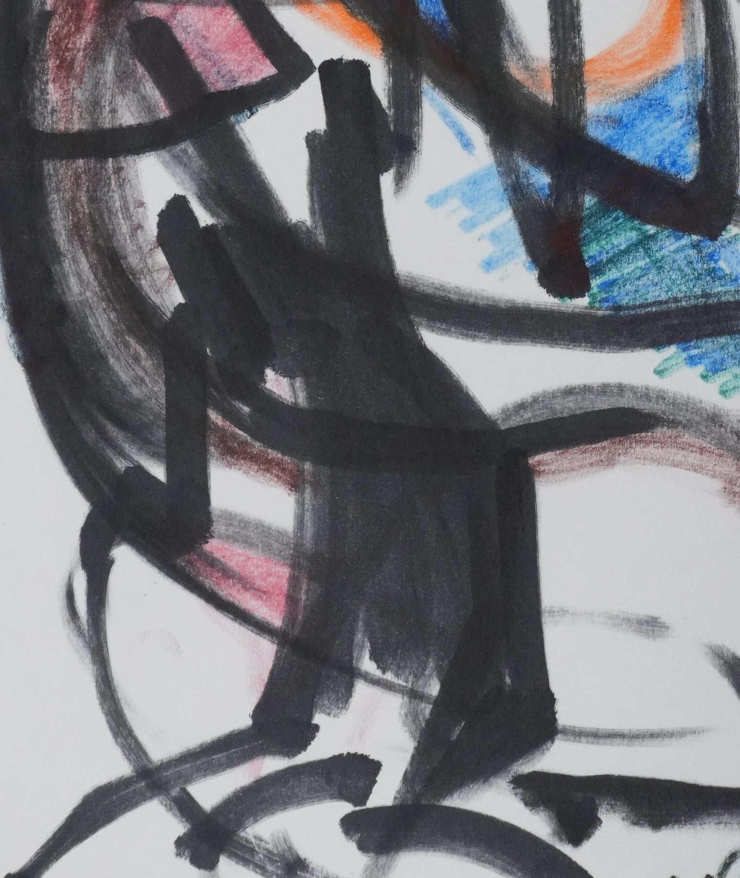 Jacques DEMOULIN : Composition colorée à l'arbre, Dessin original signé