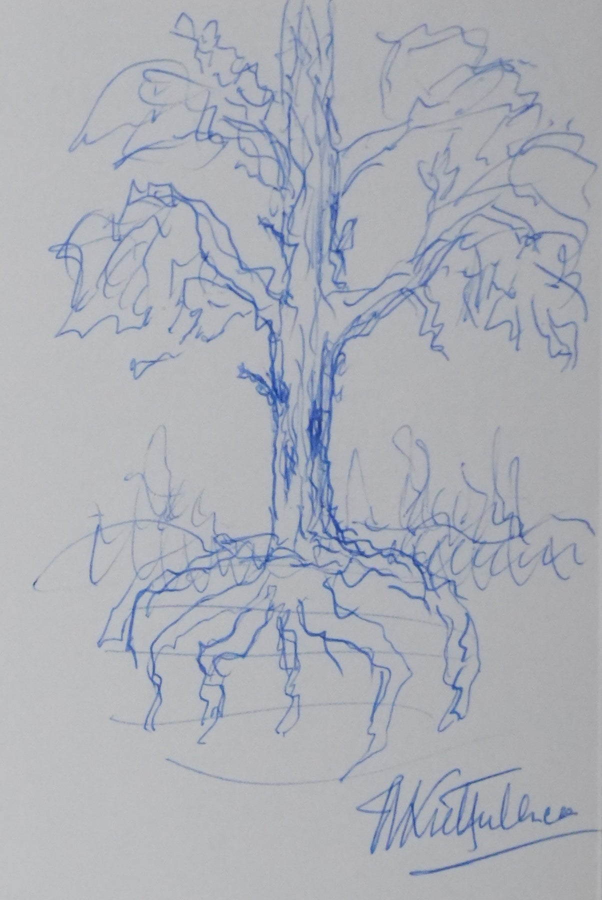 PROVENANCE : Ce dessin provient de la collection personnelle de Pierre Lhoste. Journaliste de radio, Pierre Lhoste (1913-1984) demanda aux personnalités qu’il recevait de réaliser un autographe accompagné d'un dessin d’arbre, constituant ainsi un témoignage unique de ses entretiens.