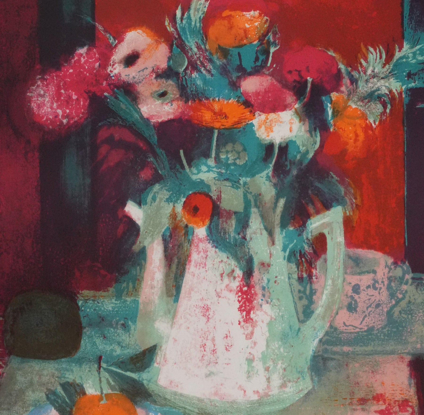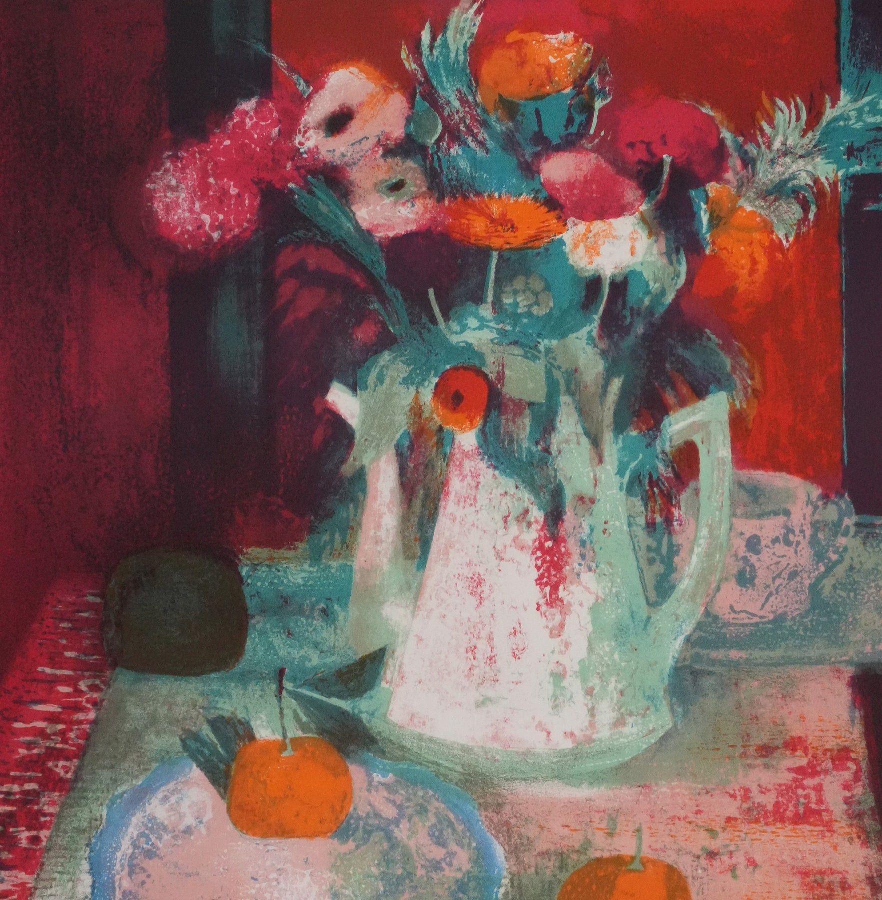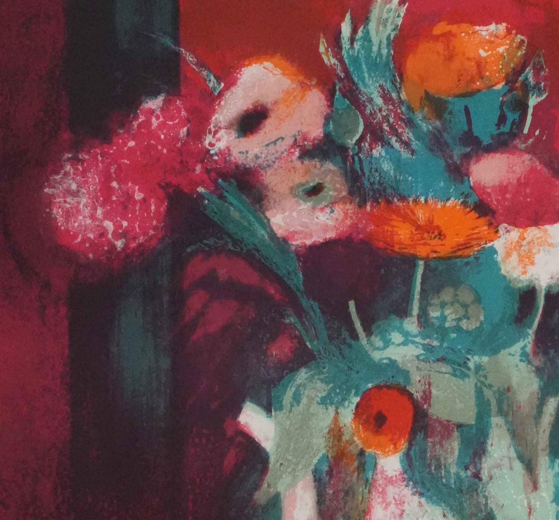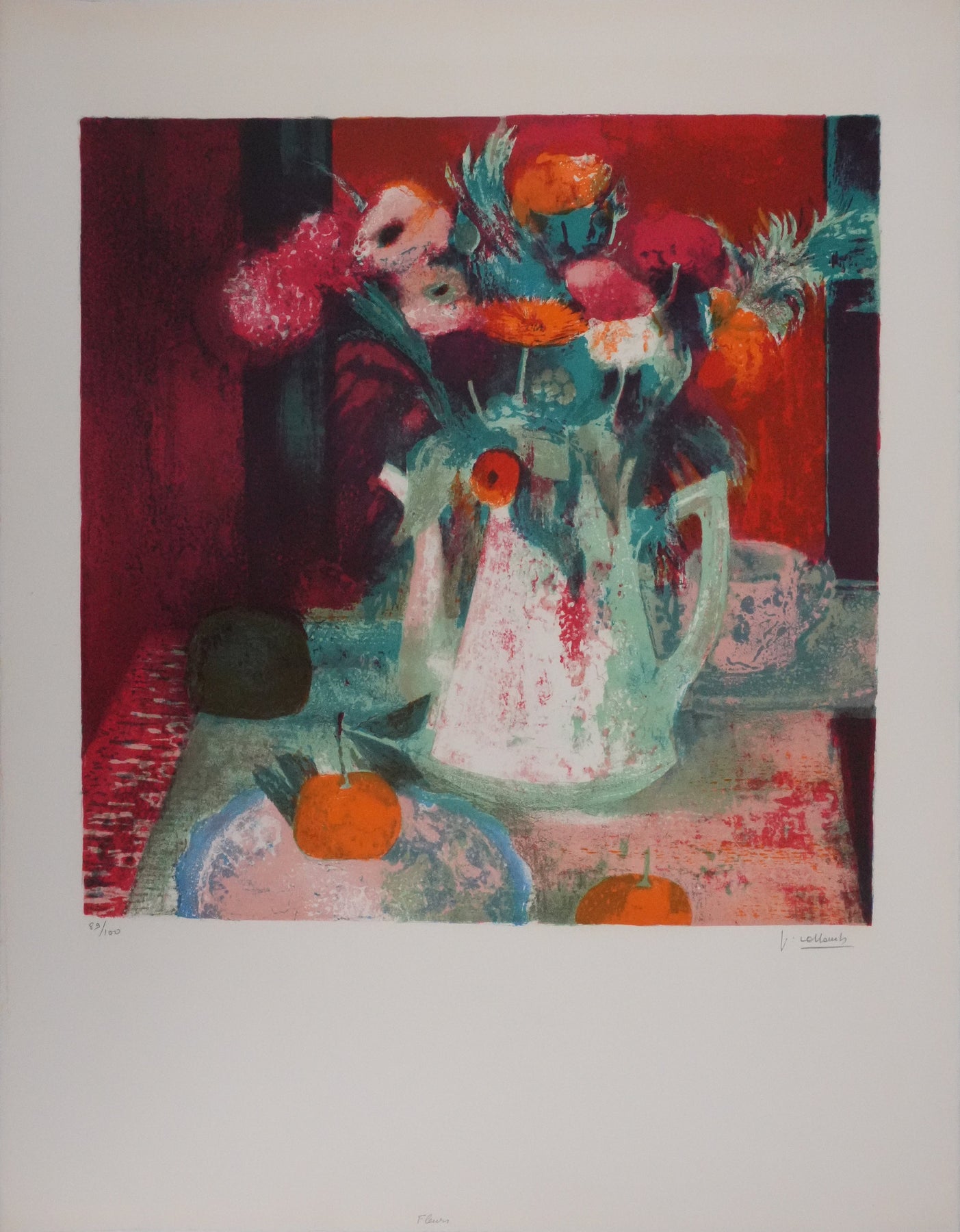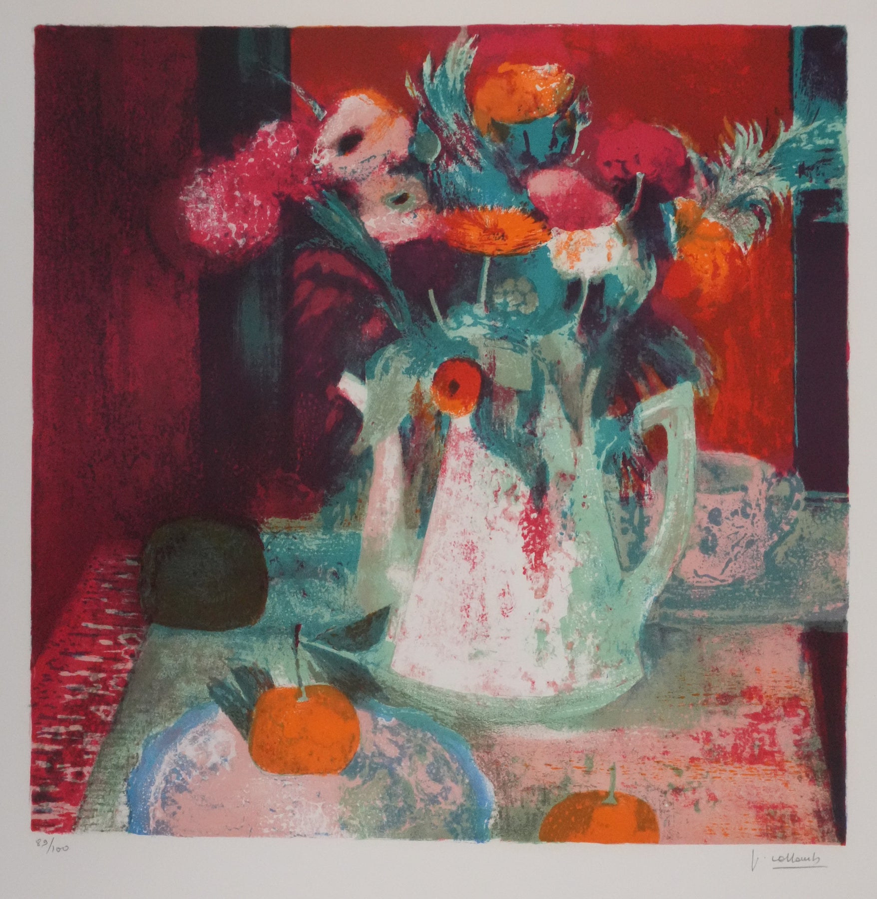 Paul COLLOMB : Fleurs oranges, Lithographie originale signée