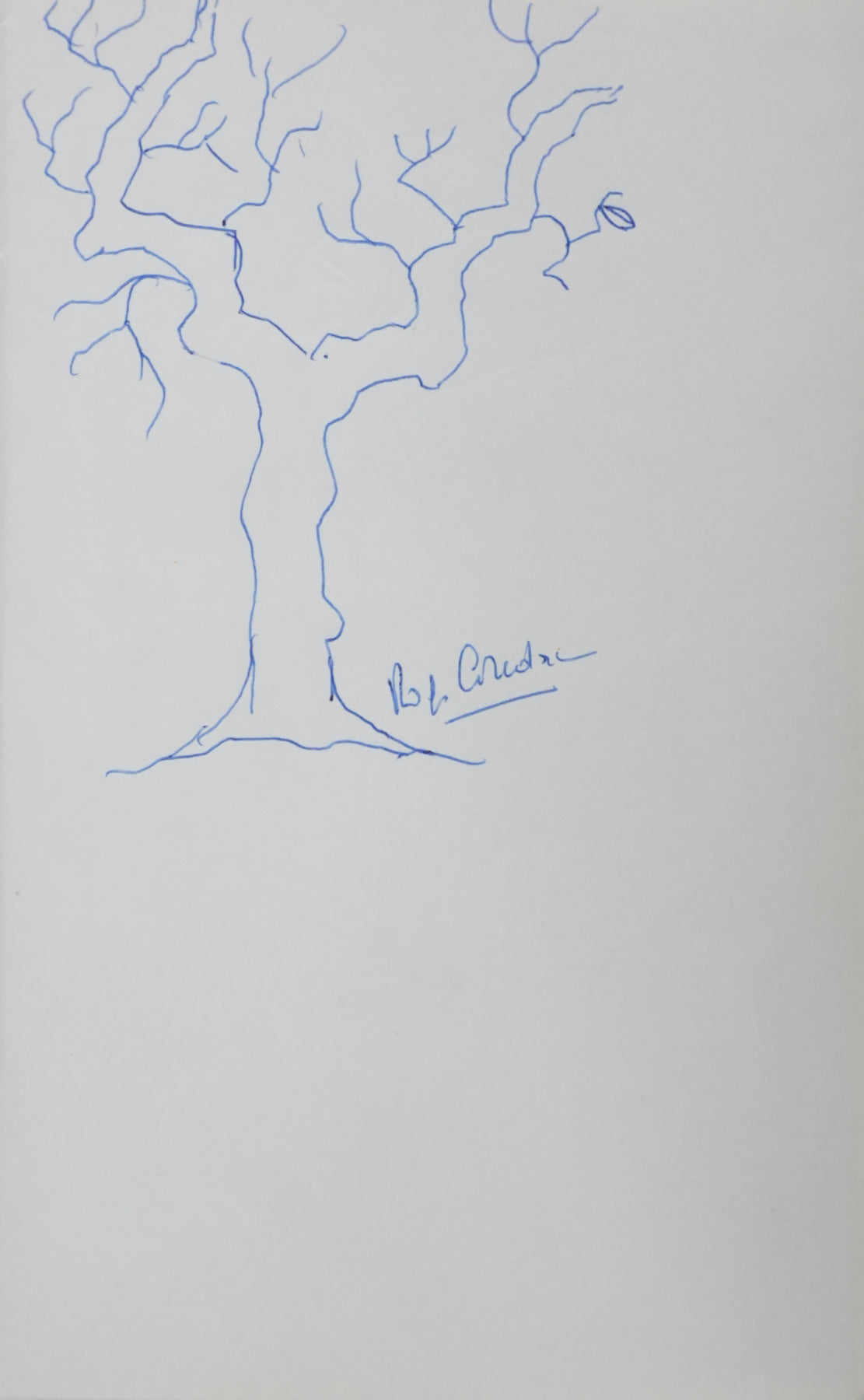 PROVENANCE : Ce dessin provient de la collection personnelle de Pierre Lhoste. Journaliste de radio, Pierre Lhoste (1913-1984) demanda aux personnalités qu’il recevait de réaliser un autographe accompagné d'un dessin d’arbre, constituant ainsi un témoignage unique de ses entretiens.