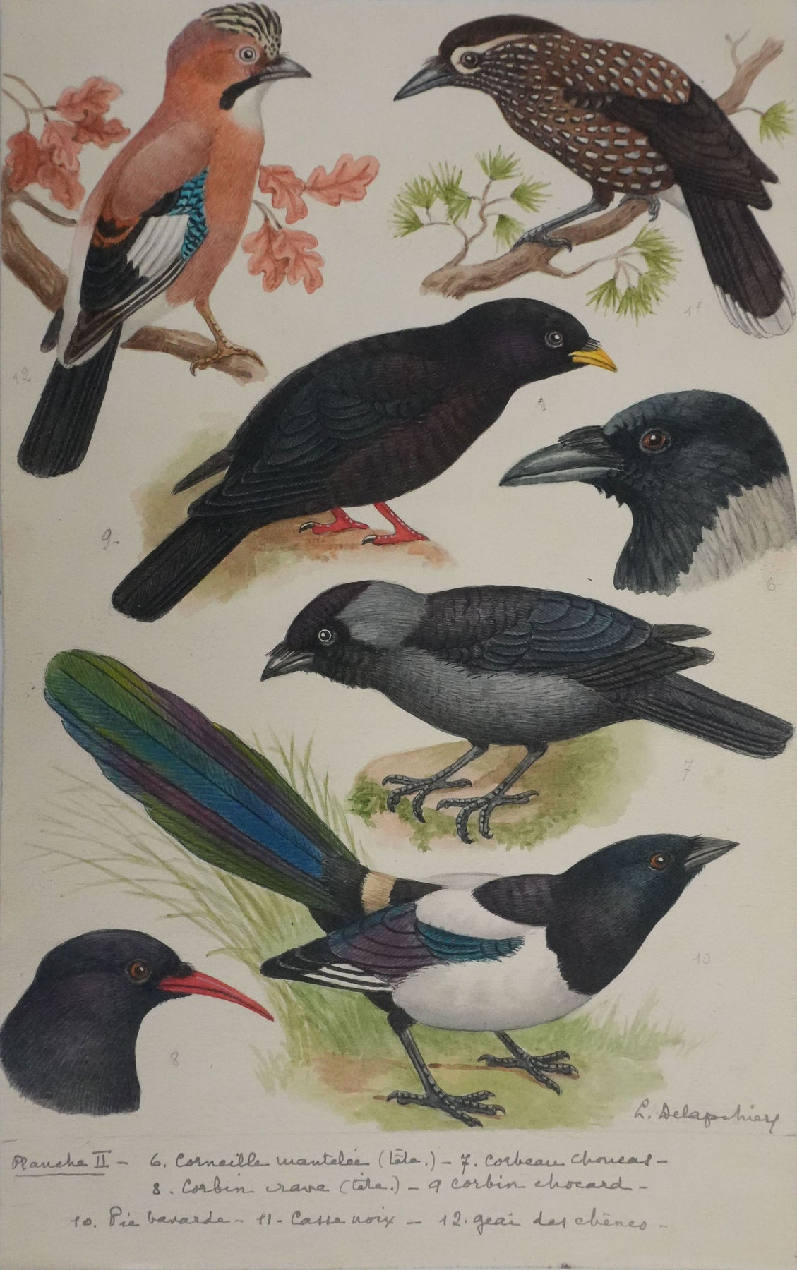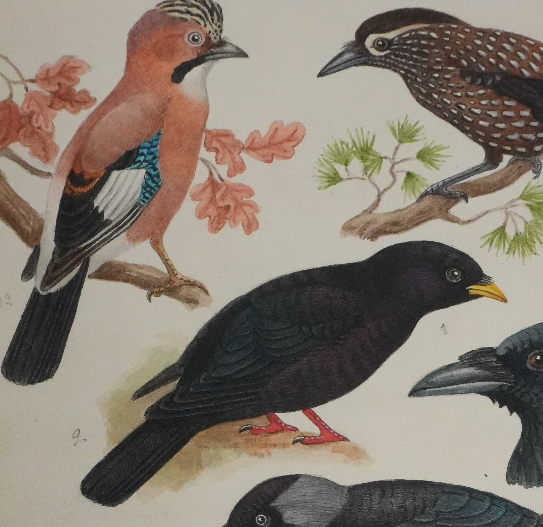 Planche d'ornithologie : Corneille, Corbeau, Pie et Geai, 1959