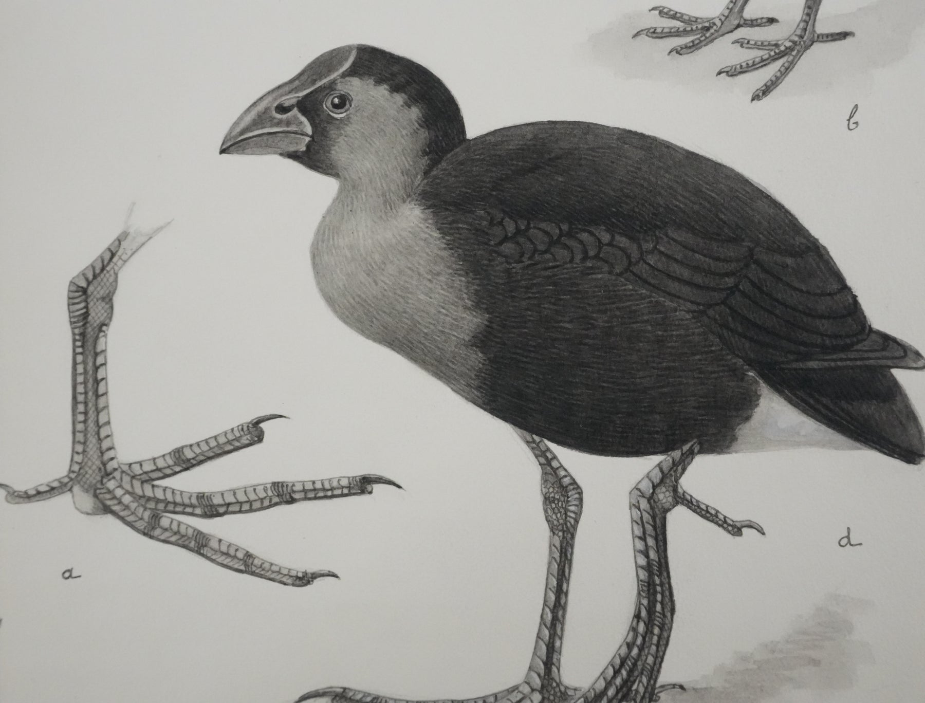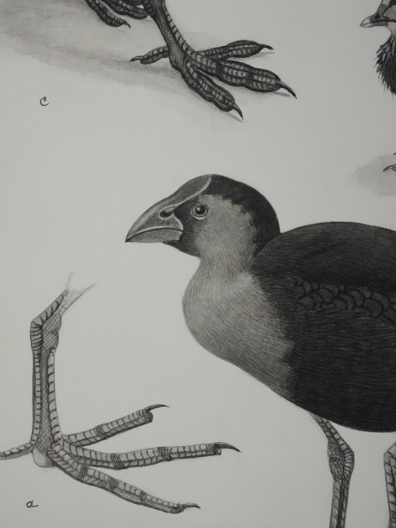 Planche d'ornithologie : Poule d'eau, Foulque et Poule Sultane