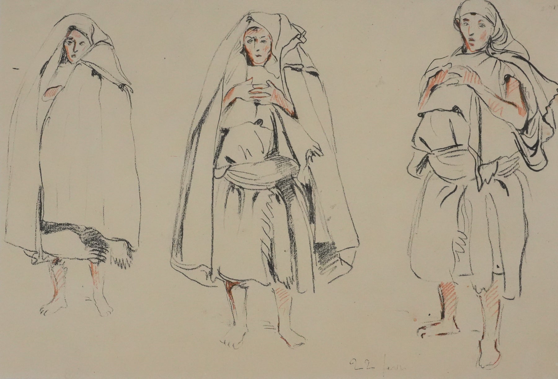 Eugène DELACROIX (d'après) : Silhouettes marocaines, Lithographie