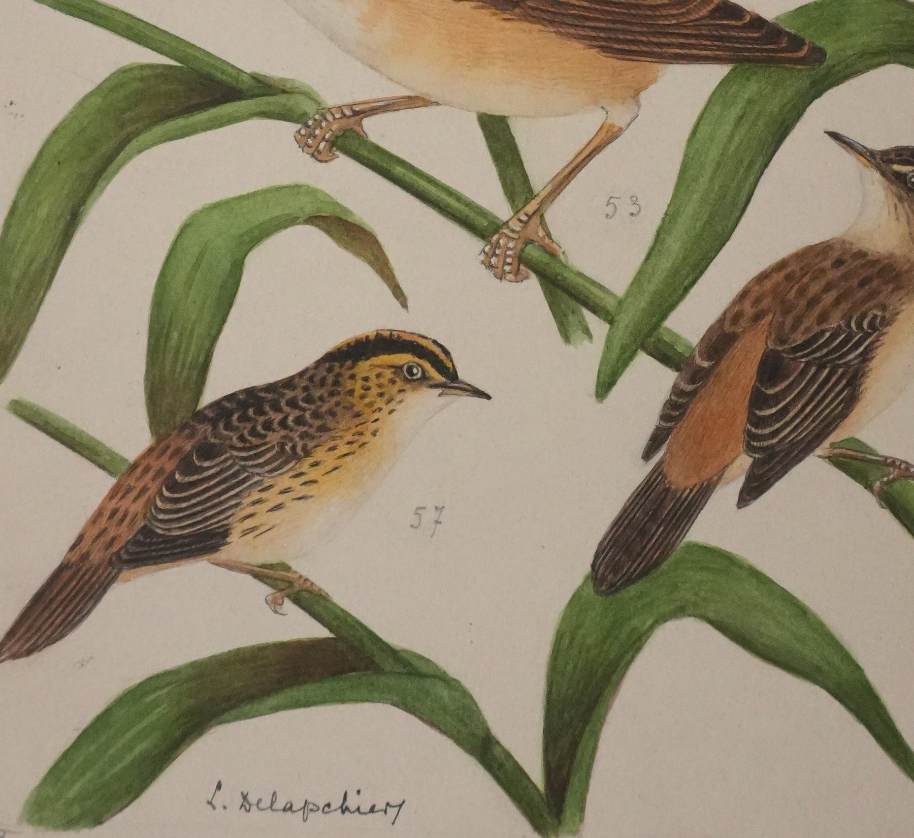 Planche d'ornithologie : Rousserolles et Phragmites, 1959