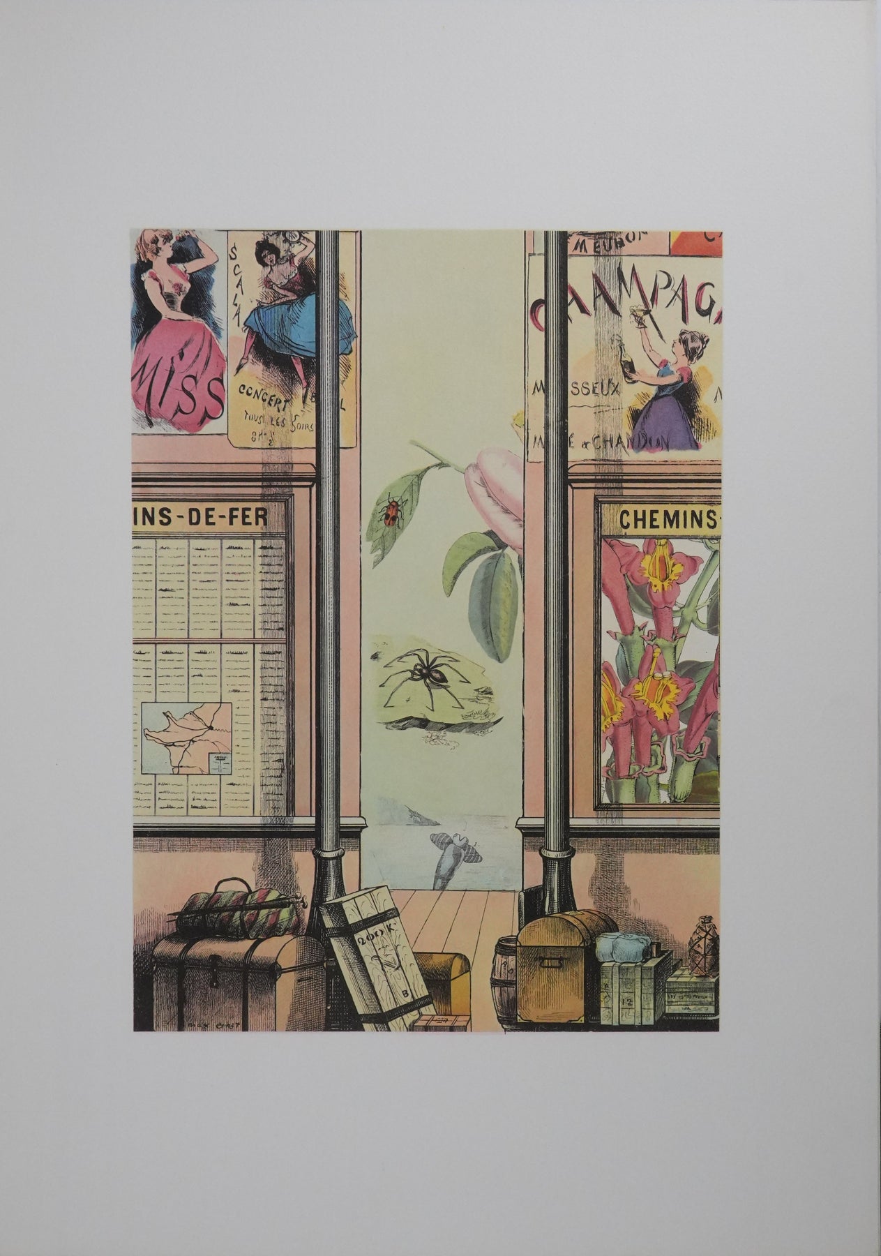 Max ERNST : Le chemin de fer et vue sur la mer, Lithographie signée