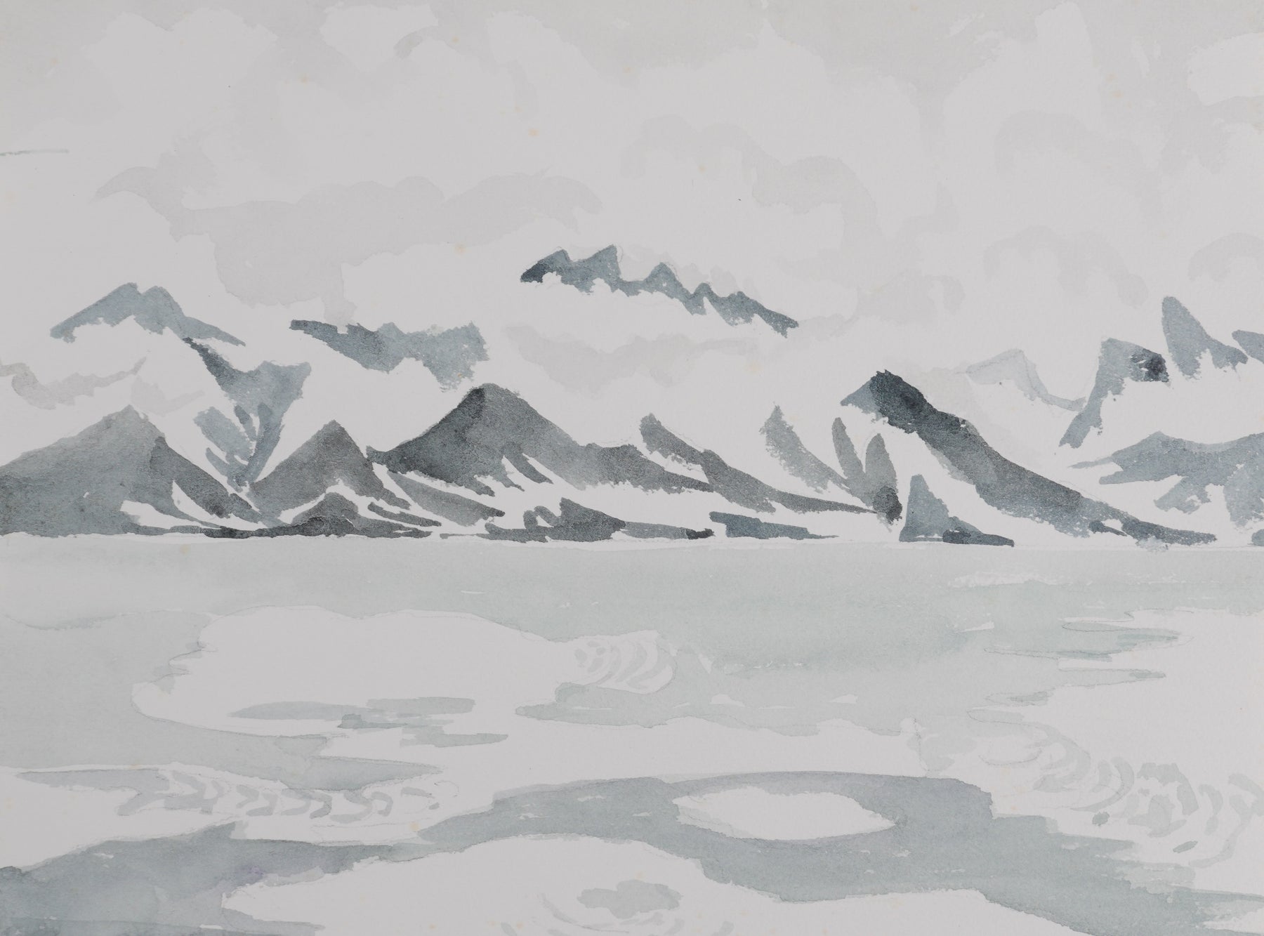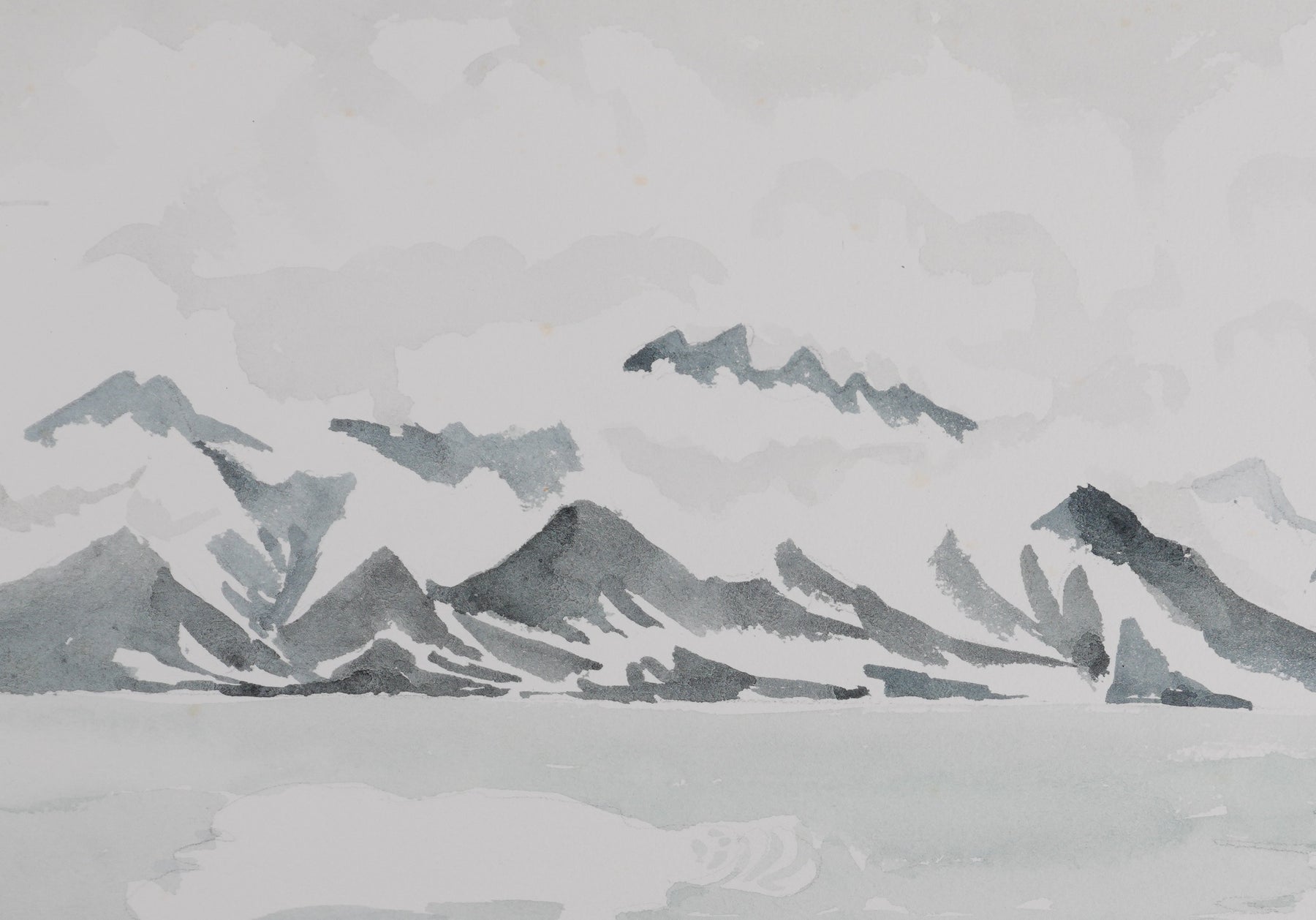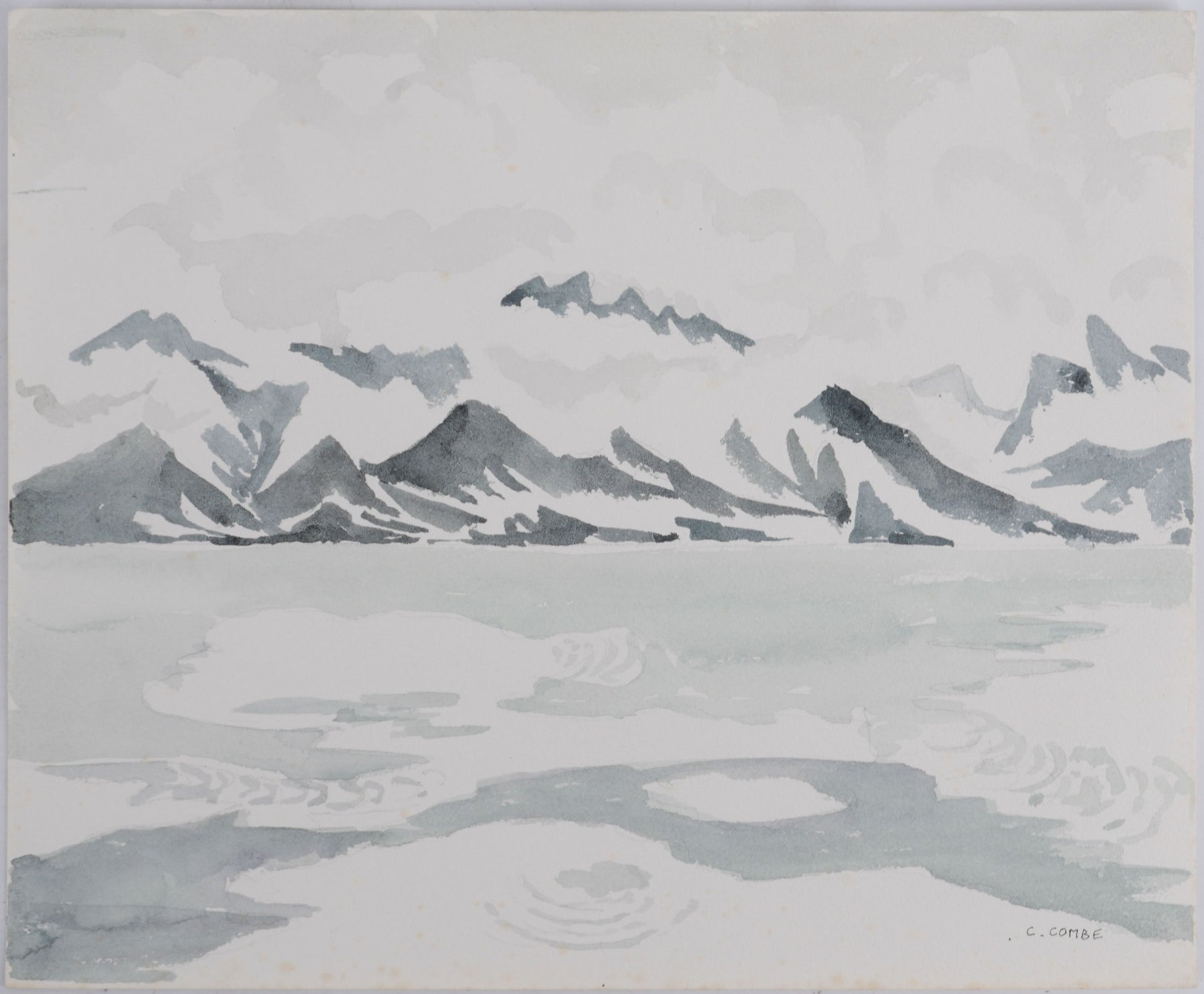 Camille COMBE : Les cimes enneigées, Aquarelle originale signée