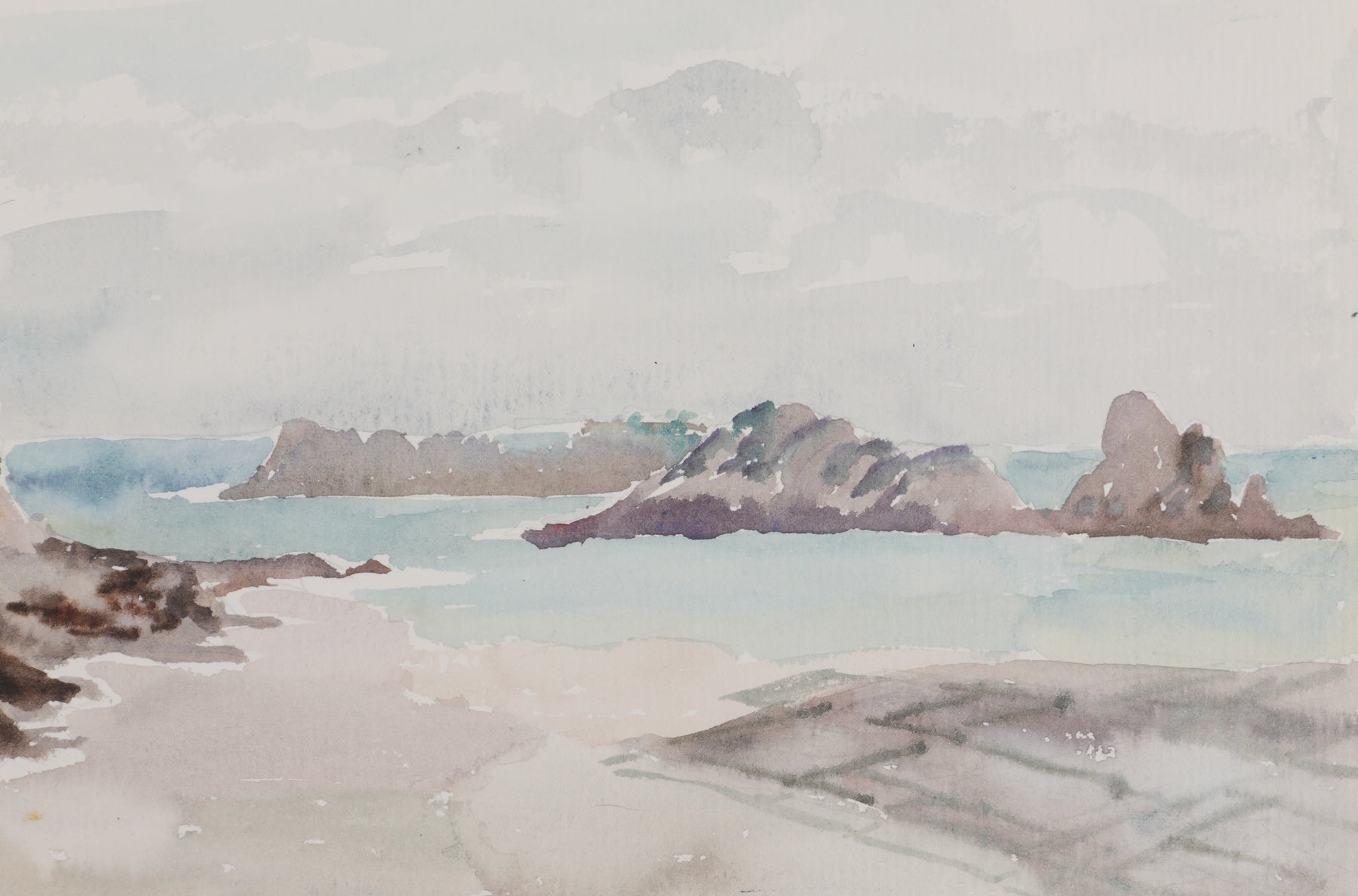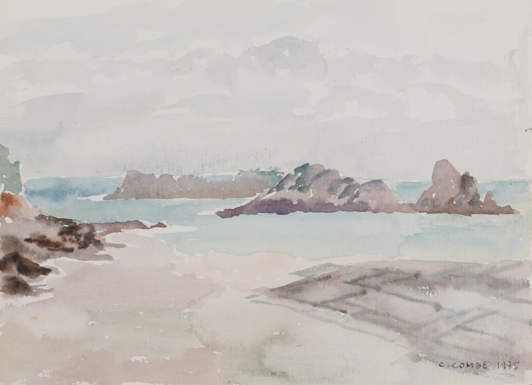 Camille COMBE : Bretagne, Plage à Cancale, Aquarelle originale signée
