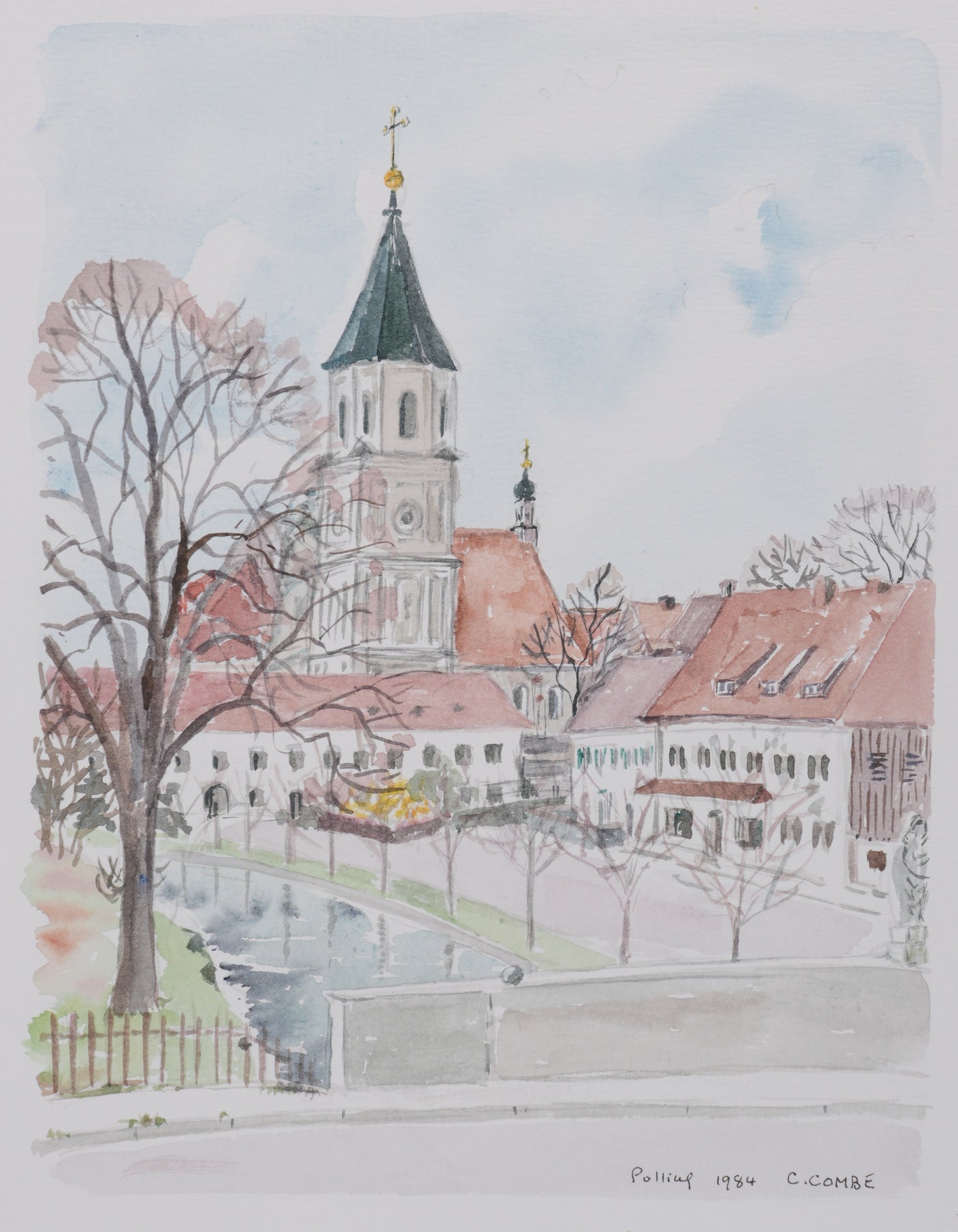 Vue sur l'église du village, 1977