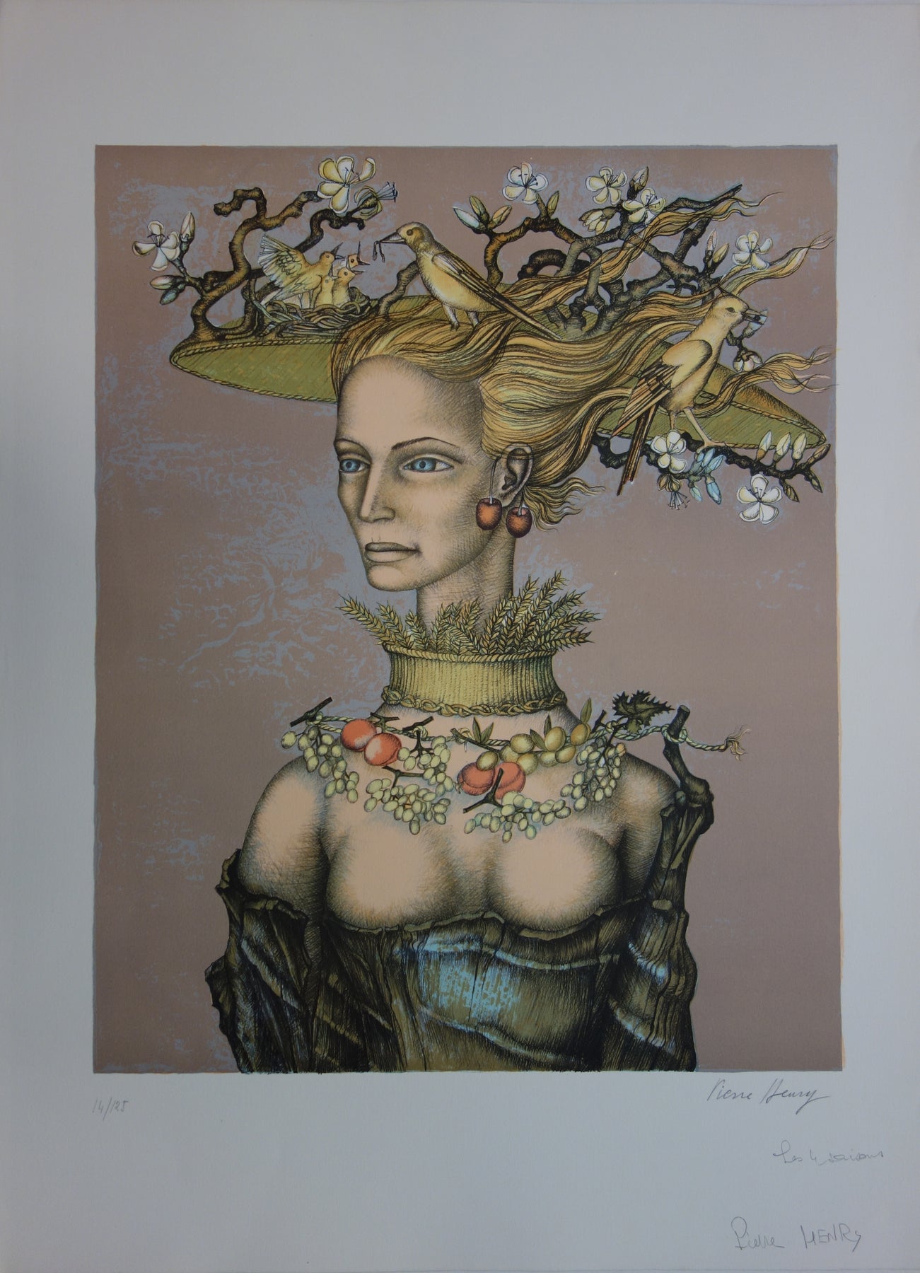 BT Pierre HENRY, Die vier Jahreszeiten, Original signierte Lithographie