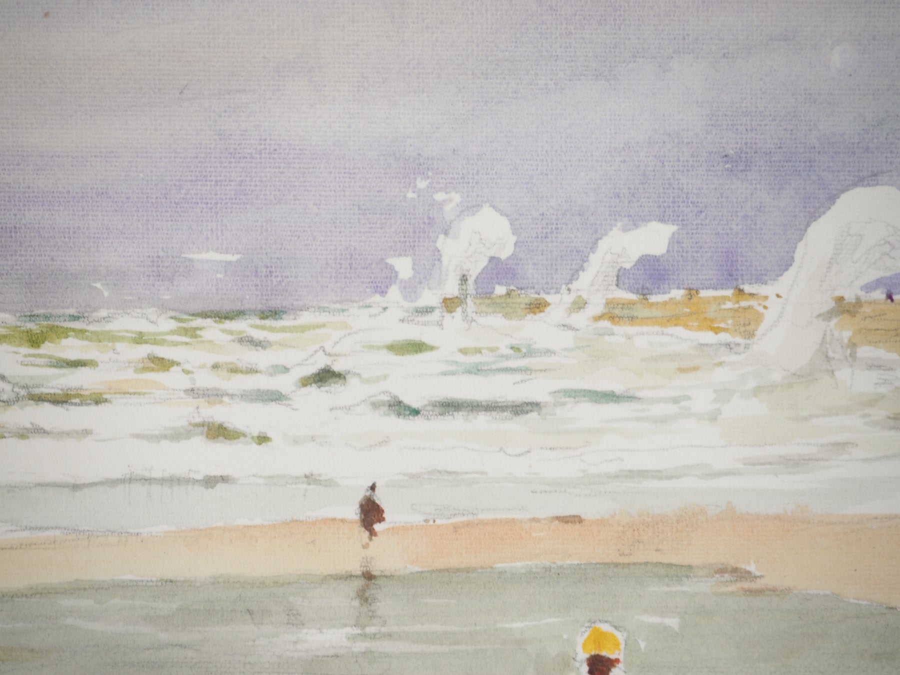 René LEVERD : Sur la plage, Le Portel, Aquarelle originale signée