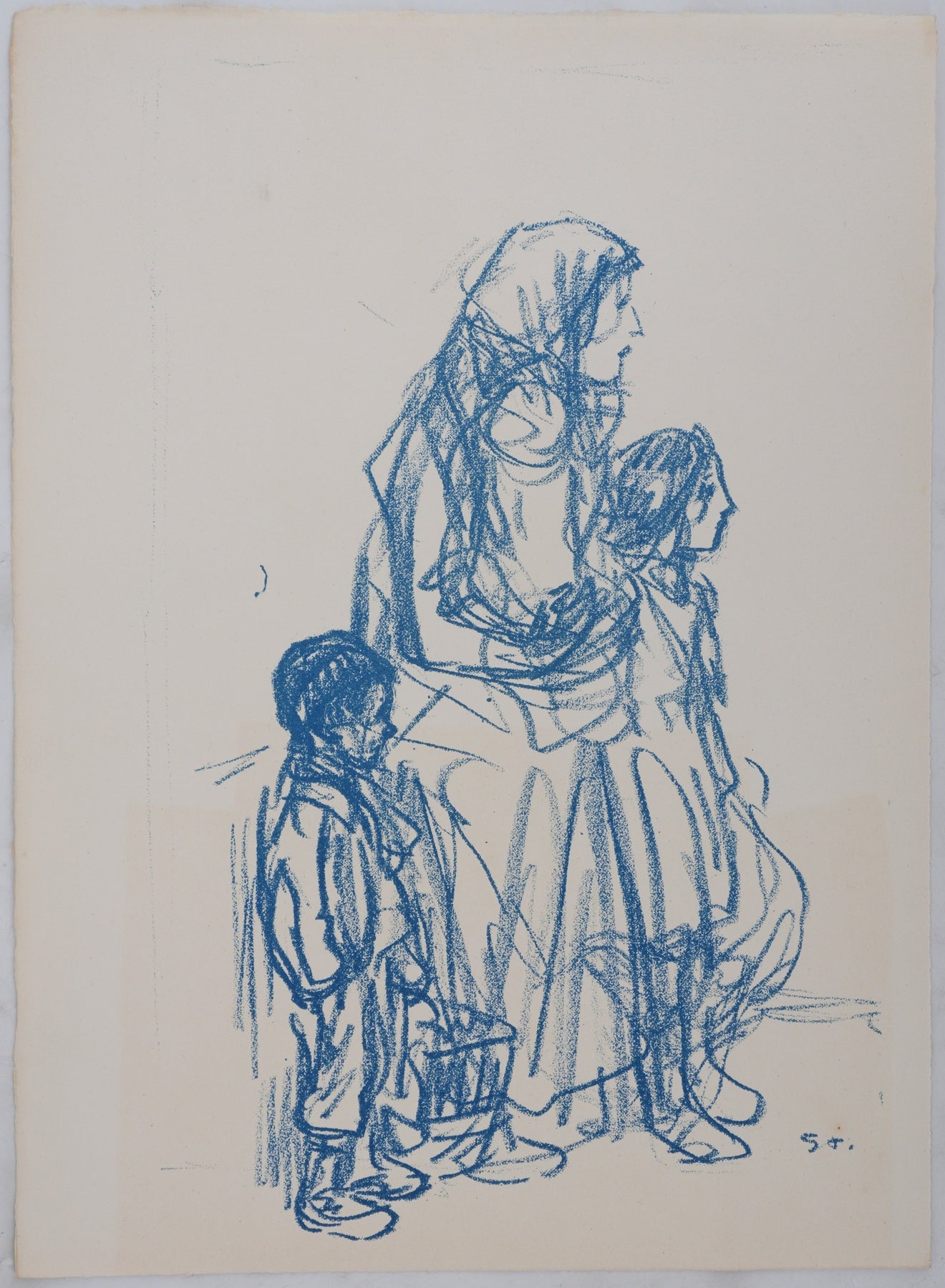 Théophile Alexandre STEINLEN : Femme de profil et ses trois enfants, Lithographie originale signée