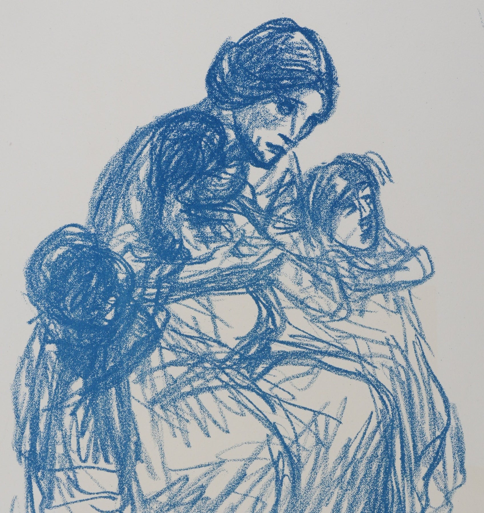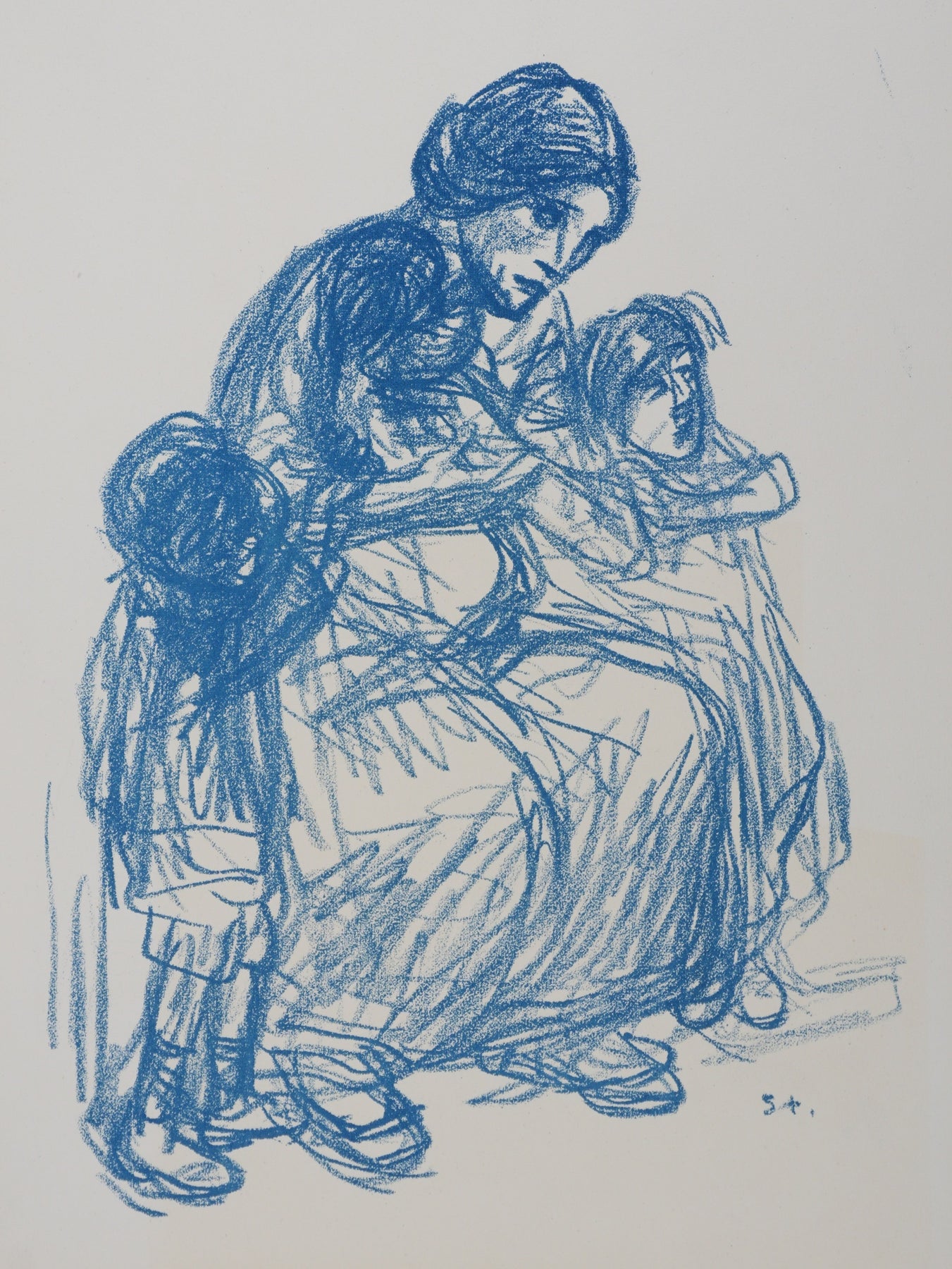 Théophile Alexandre STEINLEN : Femme de trois quart et ses trois enfants, Lithographie originale signée