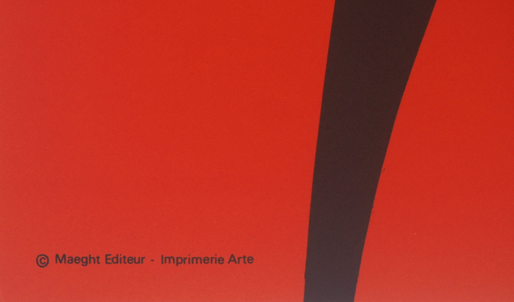 Alexander CALDER : Stabile noir sur fond rouge, Affiche en lithographie originale signée