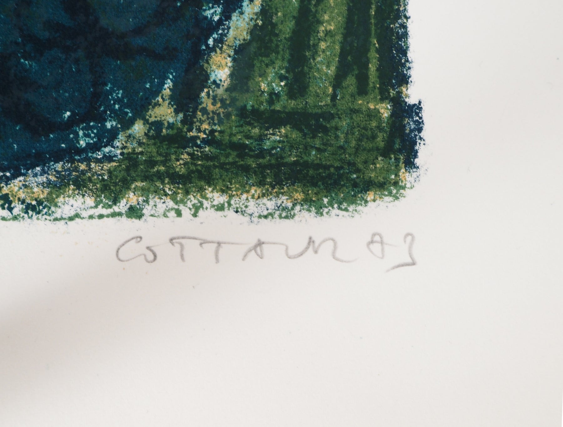 André COTTAVOZ : Les serres vertes du Sud (Vallauris), 1973 - Lithographie