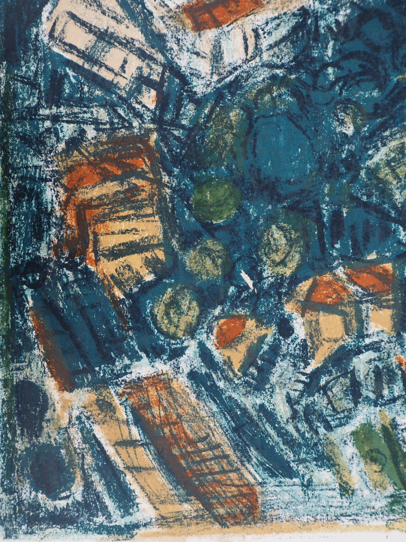 André COTTAVOZ : Les serres vertes du Sud (Vallauris), 1973 - Lithographie (détail)